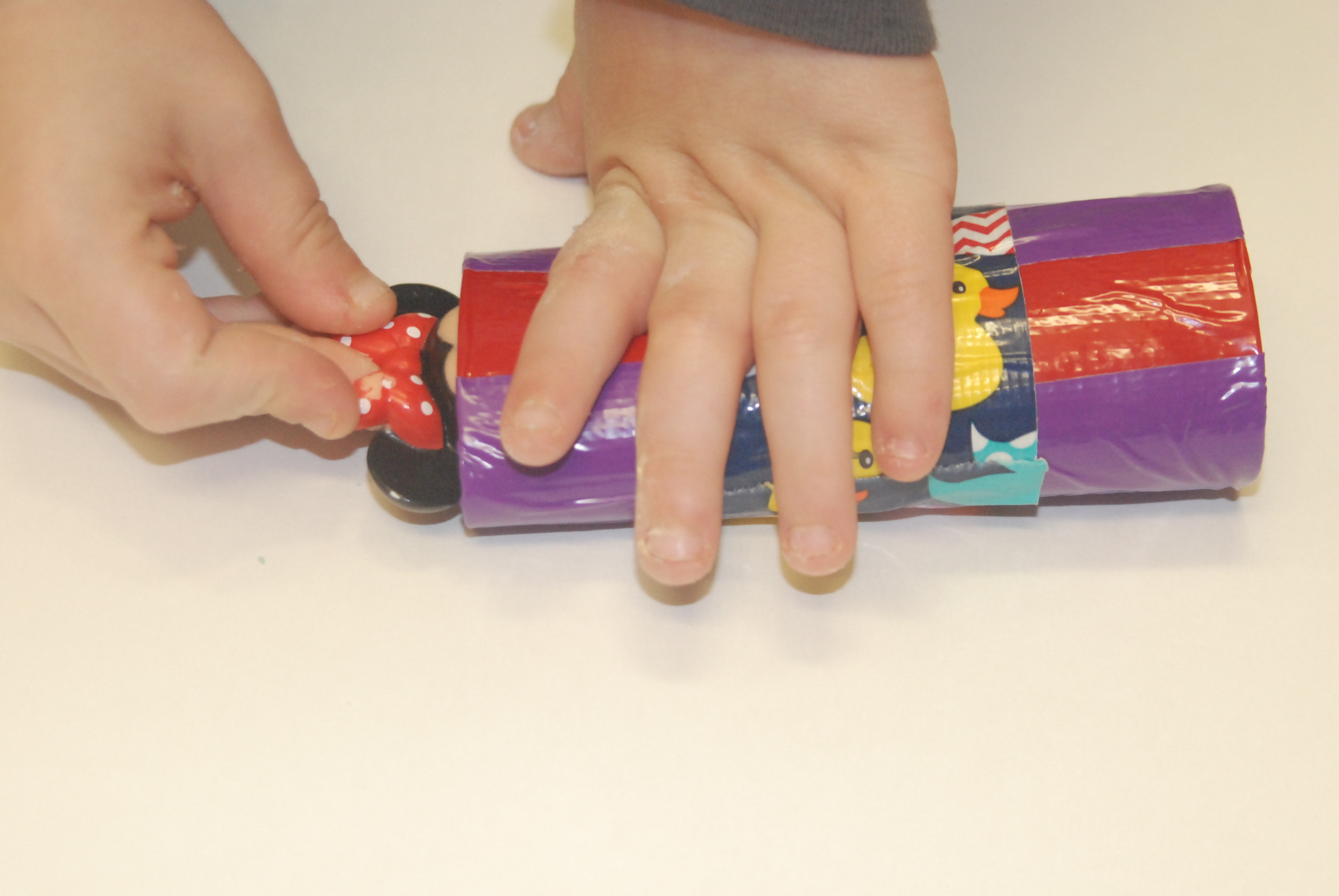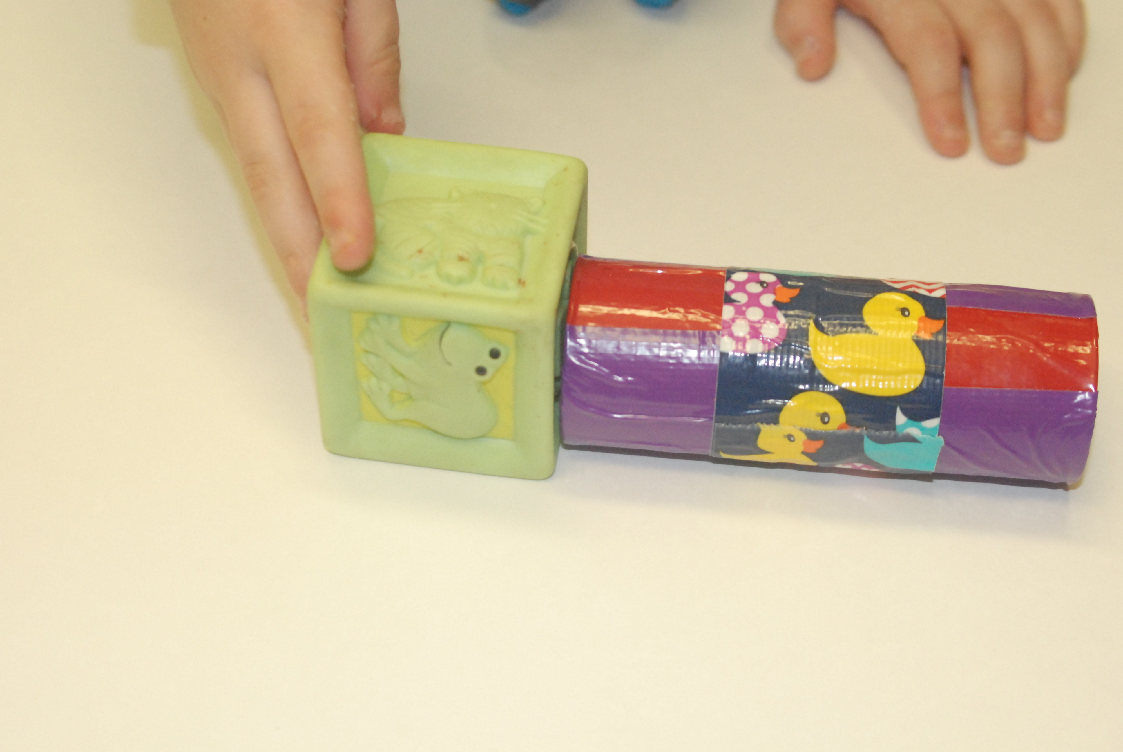 Step 5: Find several toys and show the older children how some toys fit into the tube (Legos, marbles, Matchbox cars, etc.) and some toys do not (baby rattles, large building blocks, stuffed animals, etc.).