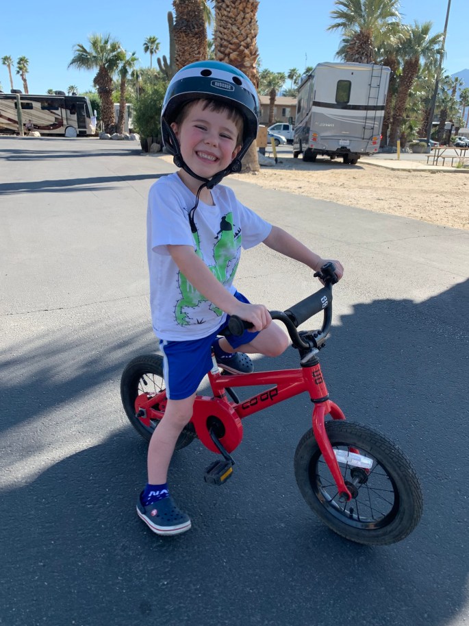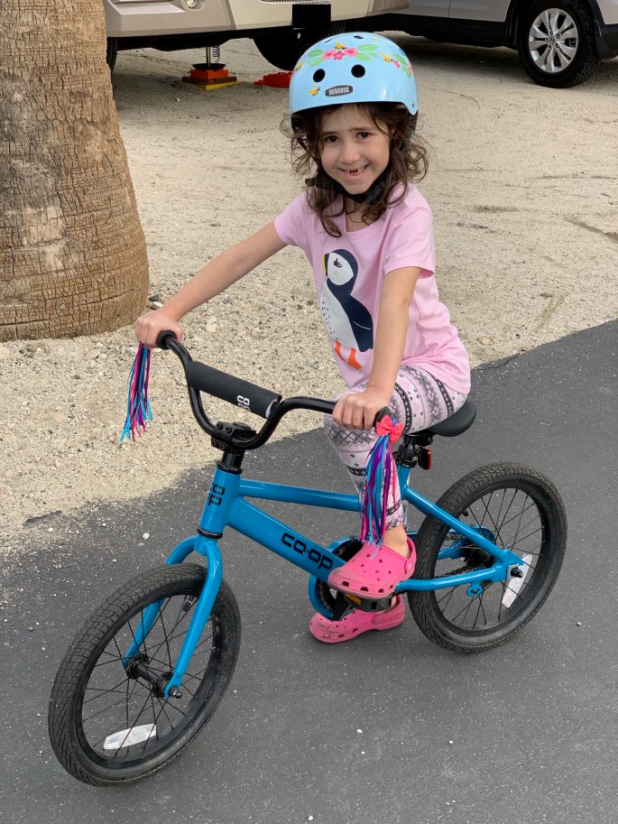 Both K (age 6) and B (age 4) learned to ride bikes without training wheels here!