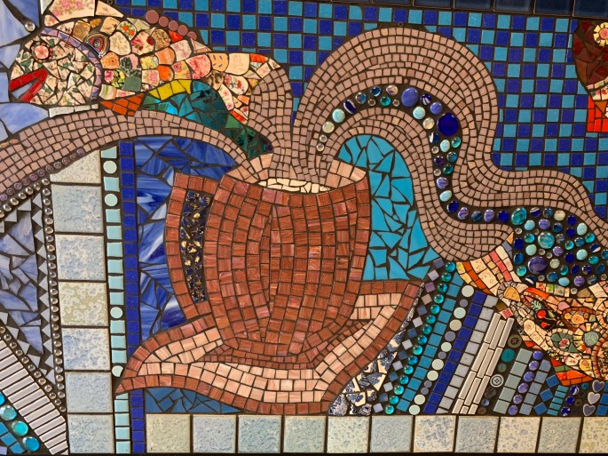 Before heading back to the RV we grabbed a coffee and a cookie from Dawson Taylor Coffee Roasters. The counters had the coolest mosaic artwork on them. Look at the detailed pieces of broken pottery and buttons. Amazing.