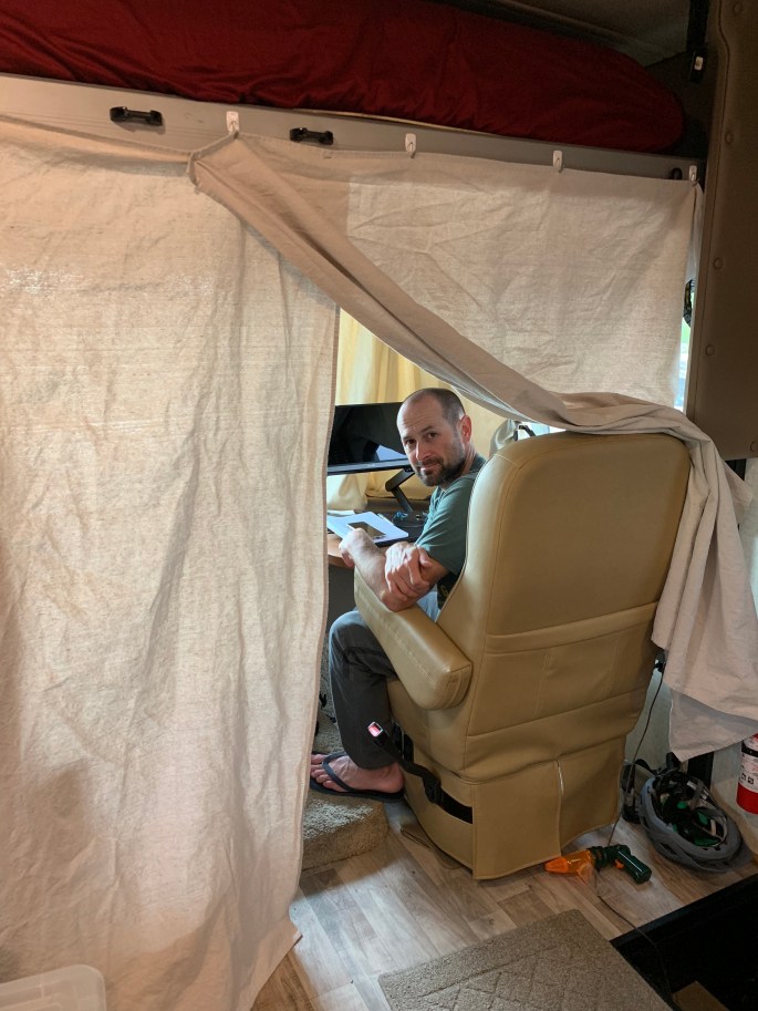 It wouldn’t be Memorial weekend without a home improvement project. Here’s the new “office door”. You can see the old one in, How you doin’? – After 4 Months of RV Living.