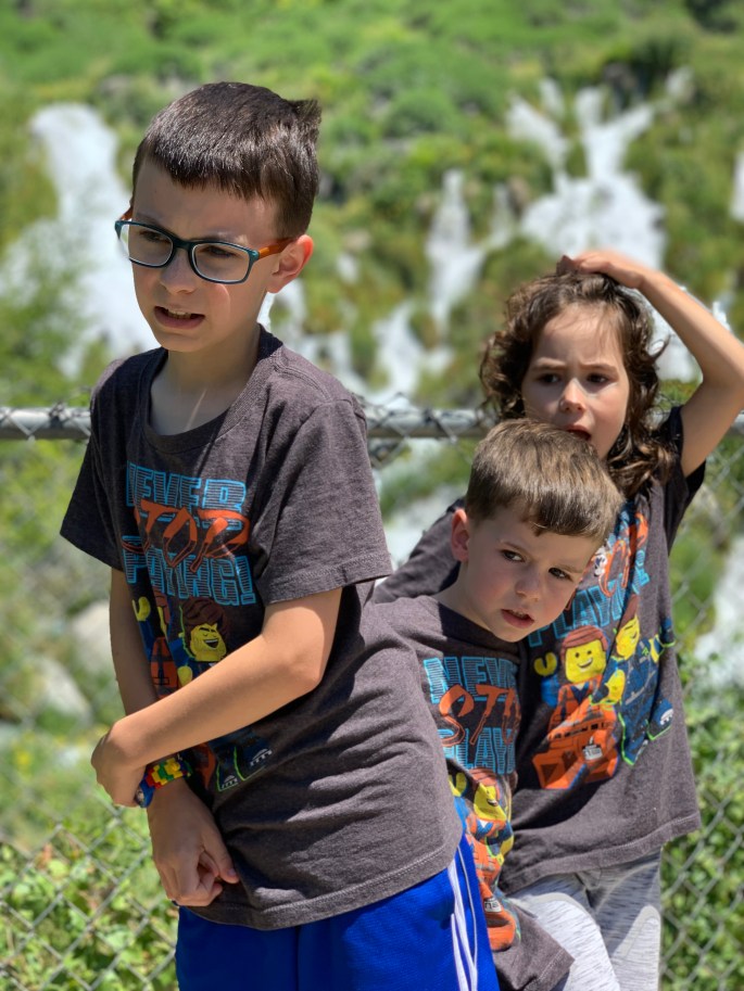 As it turns out, I’m afraid of heights. I can barely take a photo at an overlook, because I’m afraid I’m going to drop my phone! If you zoom in on the photo above, you can see the bridge we walked across. Its a metal bridge, the color of rust. It’s right next to the freeway, and we could feel it vibrating when the big rigs went by. Yikes!! E wanted to get photos on the bridge, but I just wanted to get across it, onto solid ground as fast as possible. How can you think of photos at a time like this!?! I didn’t wait to snap a selfie, and made him double back for it after the kids and I were across.
