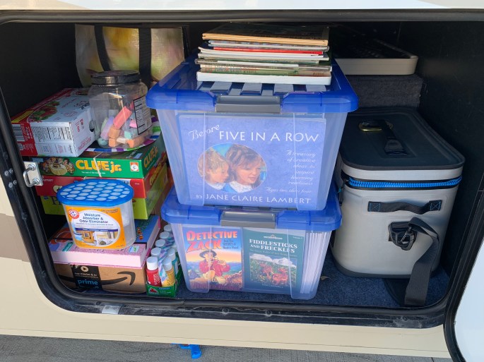 Awesome ! We’re big time book lovers too! In fact we just found the tiniest little library by the state park we are in and the kids picked up a bunch and I picked up water for elephants ! They have been reading by for about an hour now ! Love it ! We do miss having ALL our books and I’ve never had my dream fulfilled of having my own library room but it’s all good ! Our possessions are about 75% books haha