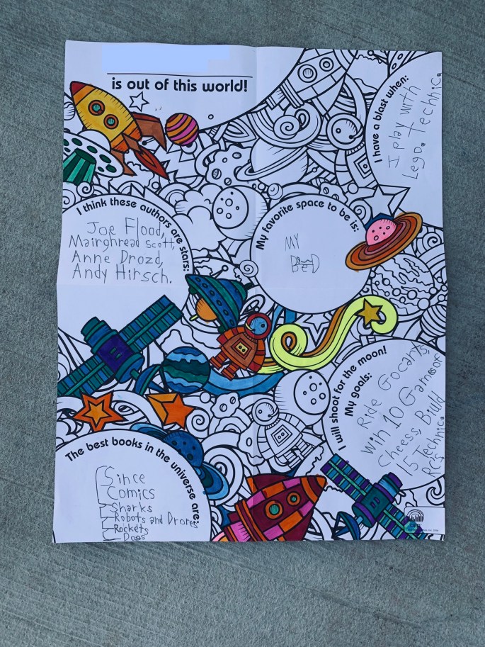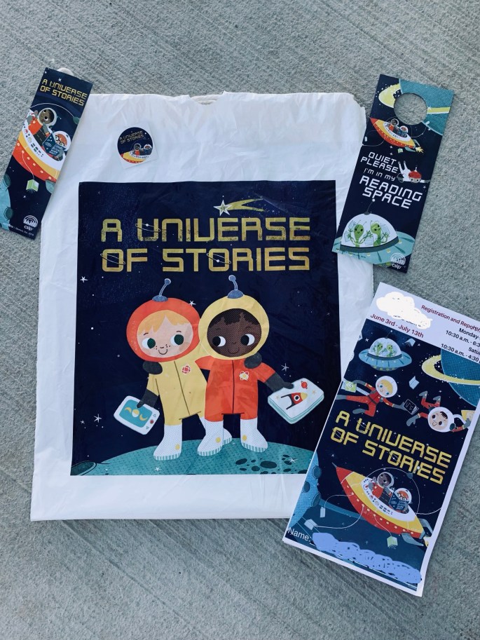 This week, we visited the closest library, signed up for the summer reading program, checked out some great books, and bought a few books at the library book store to boot! Each kiddo got a goodie bag with a record sheet, a poster to color, a bookmark, a sticker, and a doorknob sign (my fave).