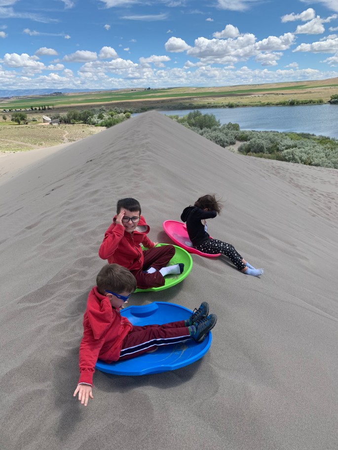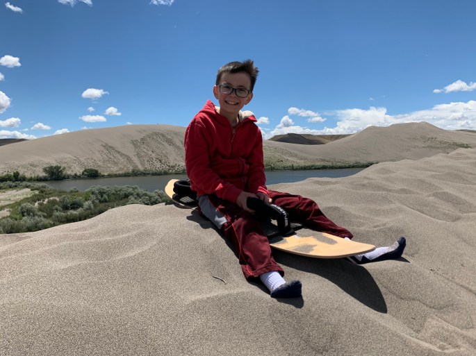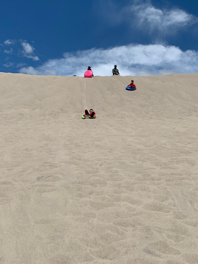 We brought along the kiddos sledding discs, and ended up renting both a sand-board and a sand-sled, just in case the plastic discs didn’t work.