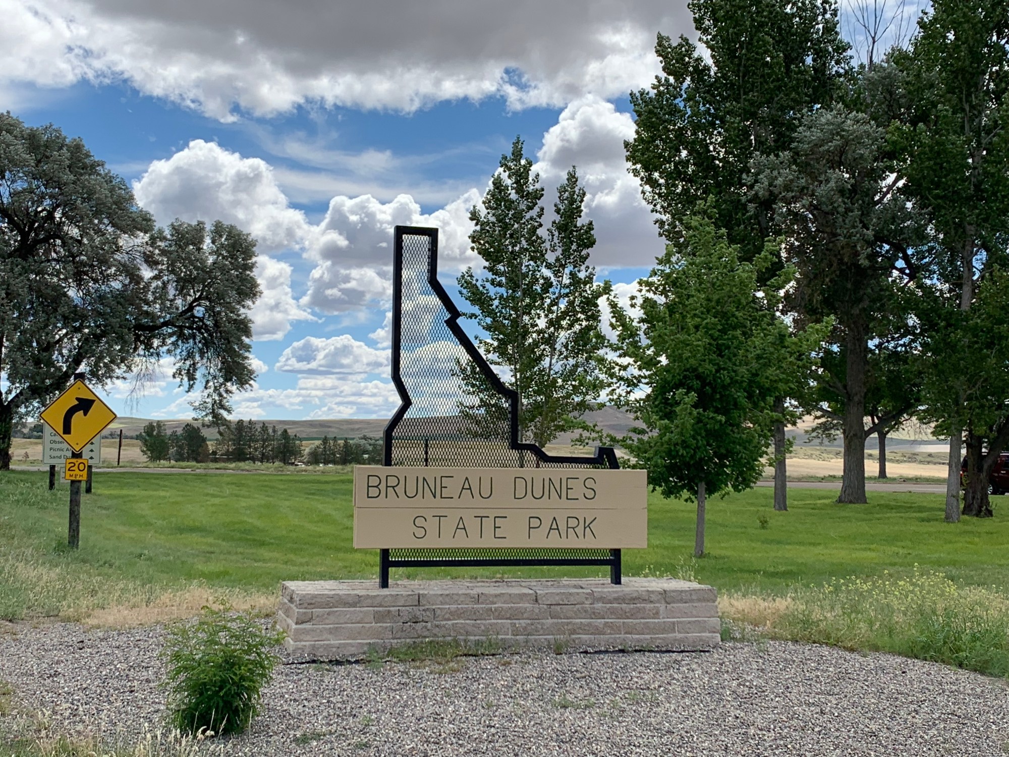 Sunny skies and cooler temps made perfect weather for a day trip to Bruneau Dunes State Park (pronounced “Bruno”). Located in southern Idaho, this state park boasts North America’s highest single-structured sand dune (about 470 feet high). This visit was E’s belated birthday activity and we rented a sand-board to try out a new sport.