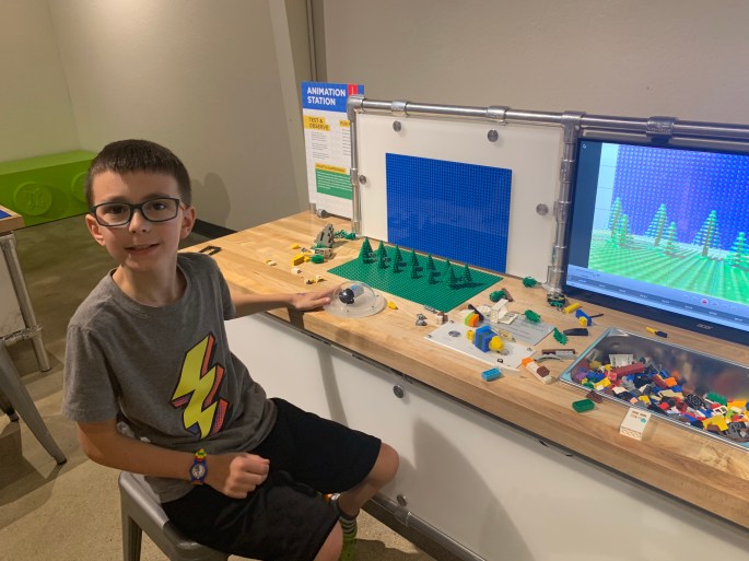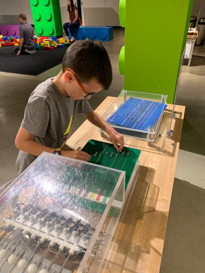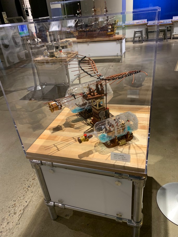 The Bricks exhibit at the Discovery Center of Idaho had amazing Lego models. These super-cool sculptures were build by adults who build custom Lego sculptures for a living. Huh… that’s a job!?! Yup, one job title is, LEGO Model Designer. You’ll never guess what my kids want to be when they grow up!