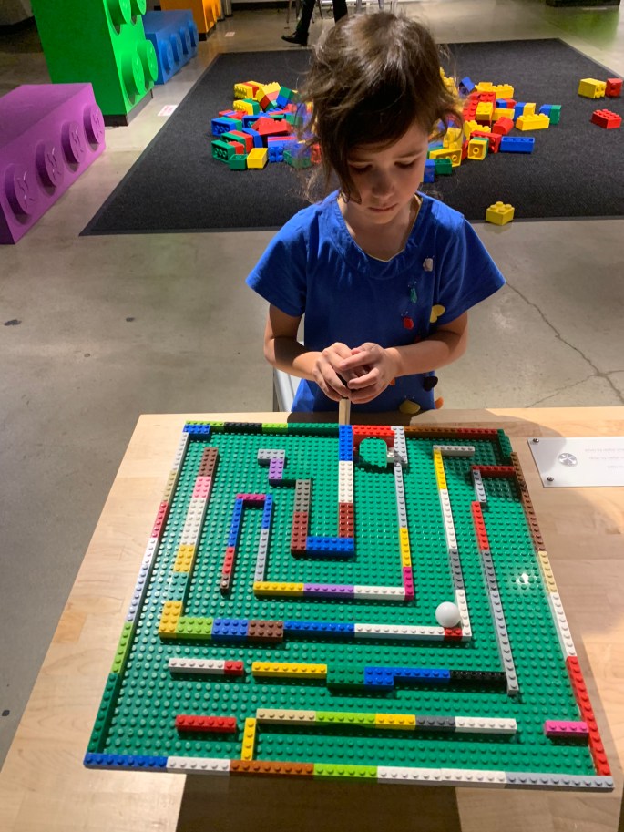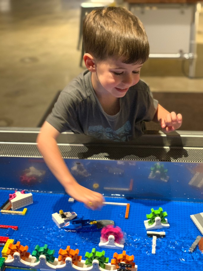 The kids spent time at every single station. We were entertained by the exhibit for almost 5 hours. Keep in mind that we are living in about 250-300 square feet, so our kiddos were really enjoying all the space available to play in. Plus, E and I were really enjoying that we weren’t responsible for clean-up. It seemed like most families spent about an hour or two there. It was a day filled with science, technology, engineering, art and math (STEAM). The kiddos had so much fun!