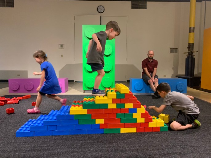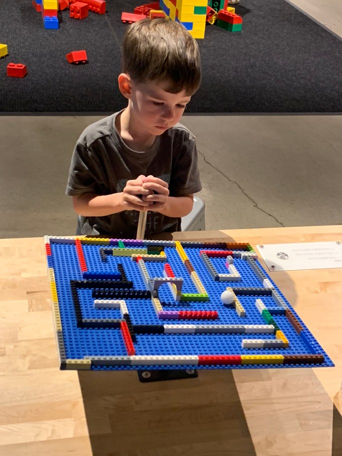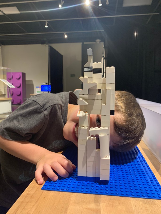 We had the pleasure of meeting some of E’s family for dinner last week and they gave us a glowing recommendation of the Discovery Center of Idaho in Boise. The kiddos were extremely interested in their current special exhibit, “Bricks”.
