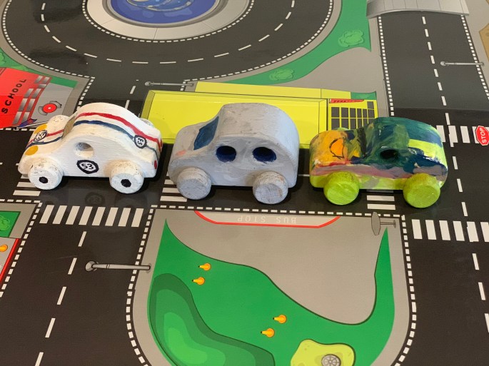 Tuesday: We painted the wooden cars my MIL sent to us several months ago. Thanks for the craft Grandma! We had so much fun painting the cars! The kiddos absolutely love painting projects!