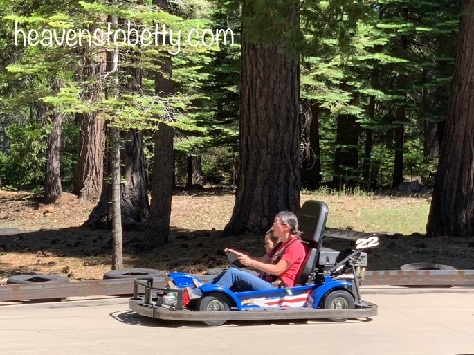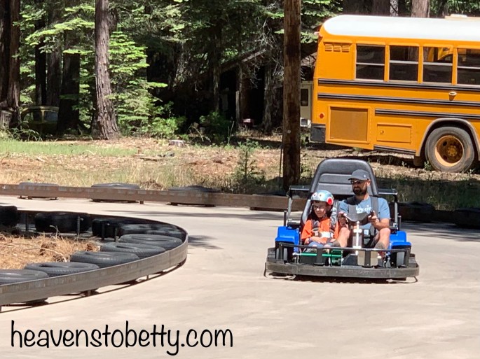 Next up, go-carts! Unfortunately. S wasn’t tall enough to drive. Fortunately, E didn’t mind giving S and B back-to-back rides. The go-cart staff was so accommodating and kind! We ❤️ Leoni Meadows staff! Meanwhile, I drove and K rode with me. I appreciated that my sweet girl didn’t complain once about getting lapped or coming in last every time with mama!