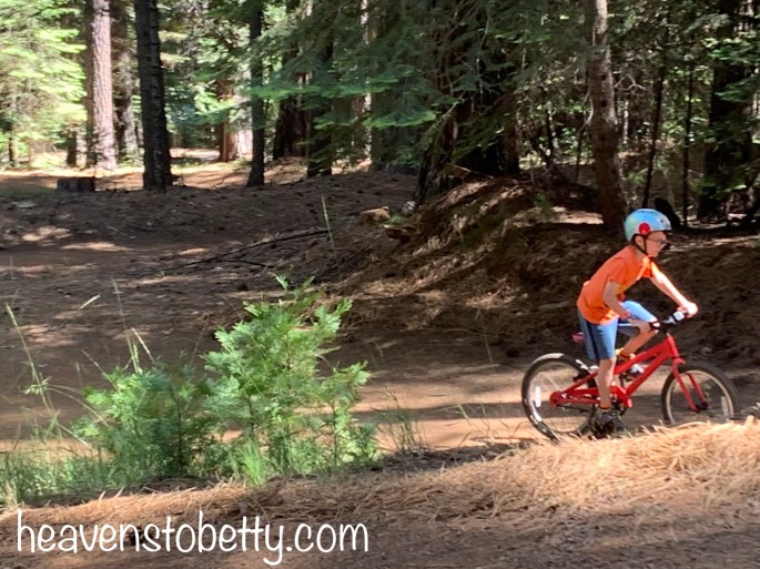 After racing around the go-cart track we felt like we needed more racing, so we hit the BMX track. Again, the staff and other campers were great about accommodating our little ones. Everyone in our family fell on the BMX track, and they each got up and kept right on riding. Mama skipped this one and just played photographer/band-aid applier.