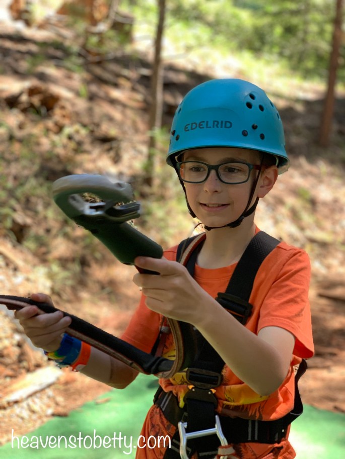 The colossal zip-line goes over the pond and after hearing other people go on it several times, E couldn’t resist and had to go check it out. Sorry we don’t have any photos of that for you. It’s a colossal zip-line, enough said. E also went to check out the challenge course (ropes course) and he completed all the challenges.