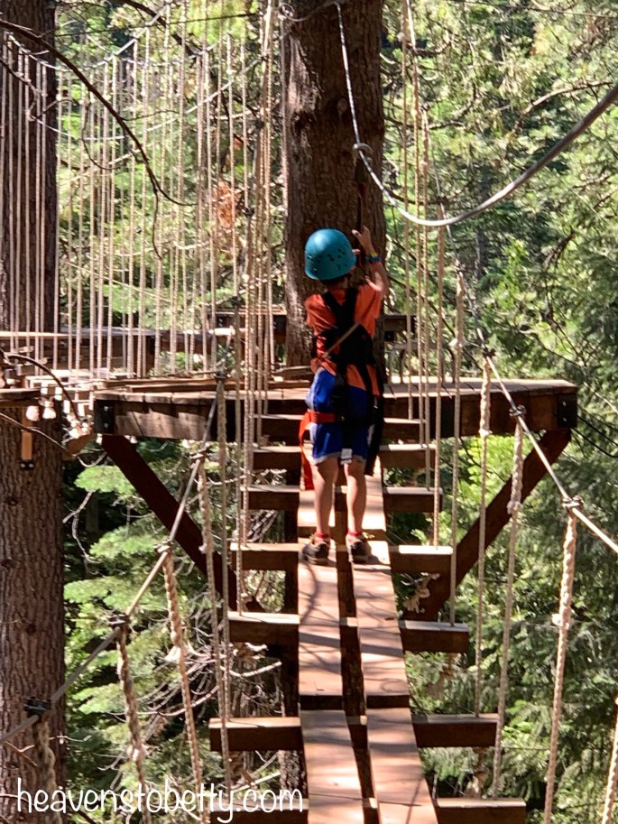 I headed off with a couple others moms to the colossal zip-line and ropes course. I think I did almost all of the challenges that S did!