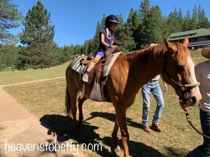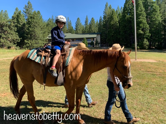 After breakfast and worship we went for staff-led horse rides. Horse rides without being led by staff were available for ages 8+. We were planning to split up so S could try the ropes course, so we decided to do our first activity together.