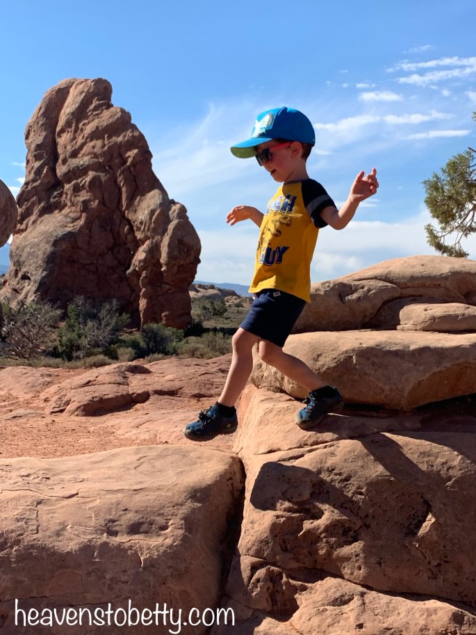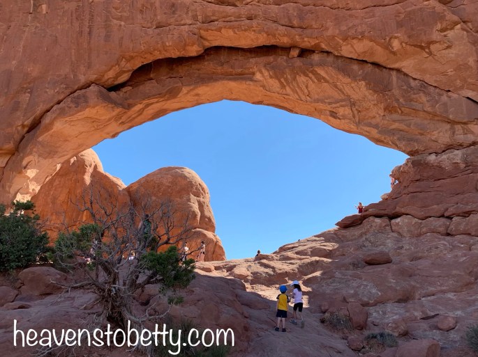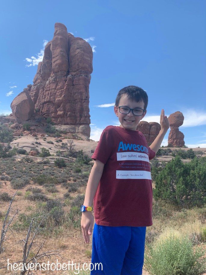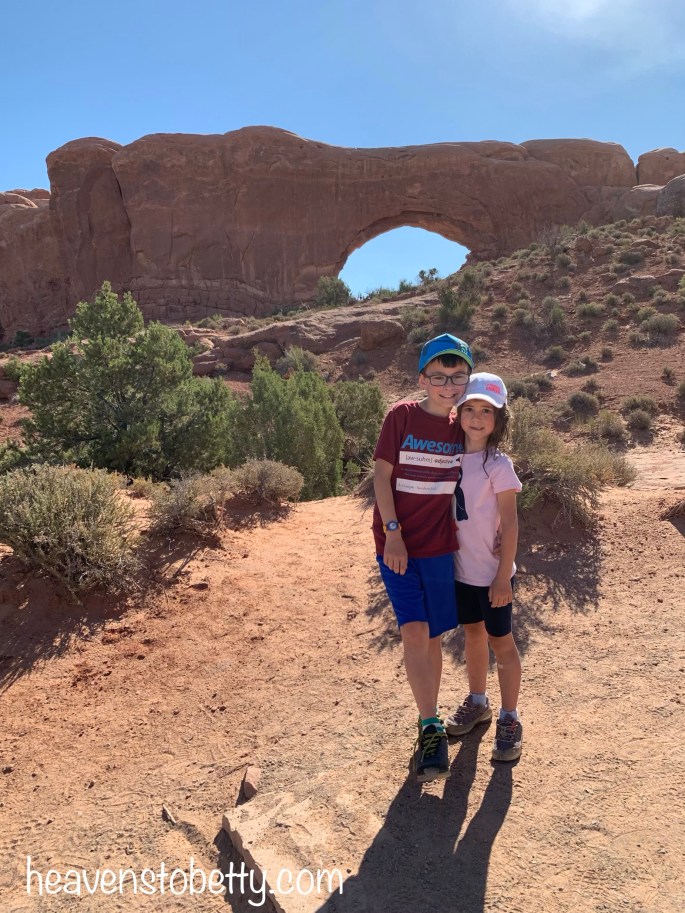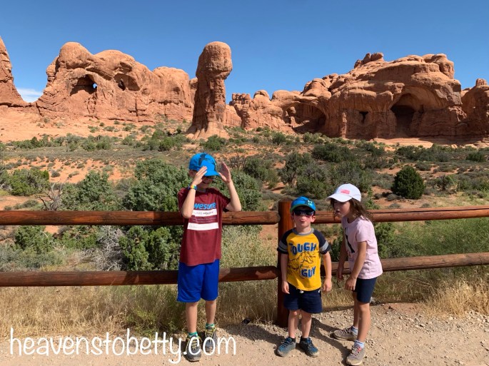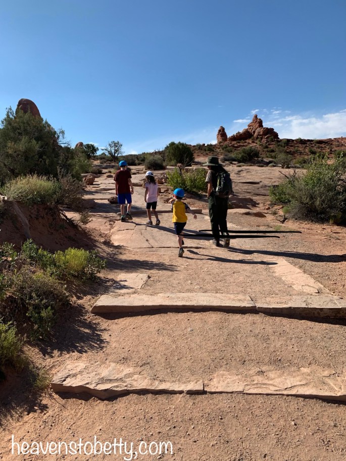 We had a wonderful time with Ranger Mariah on a private tour of “The Windows” at Arches National Park. By “private tour”, I mean that we were the only ones hiking with Ranger Mariah, there were hundreds of other tourists in the park. You’ll see many of these nice folks in the backgrounds of my photos. Want to know how I got a private Ranger-led tour? It was easy, I just looked on the park website and saw that there was a Ranger-led tour at 9:00 am, then we showed up at the stated day, location and time. We were the only people who showed up. Ranger Mariah said that most visitors don’t look at the website. The kiddos had so much fun, we all learned a lot, and Ranger Mariah got to hear our life story from the talkative kiddos. They are pretty social for homeschoolers 😉!