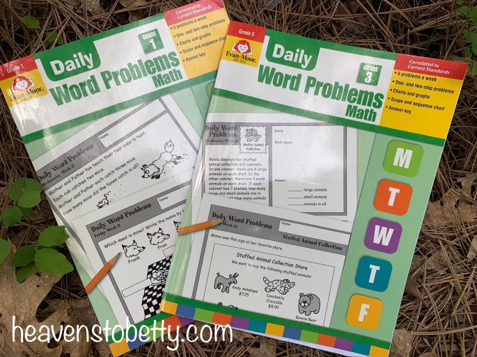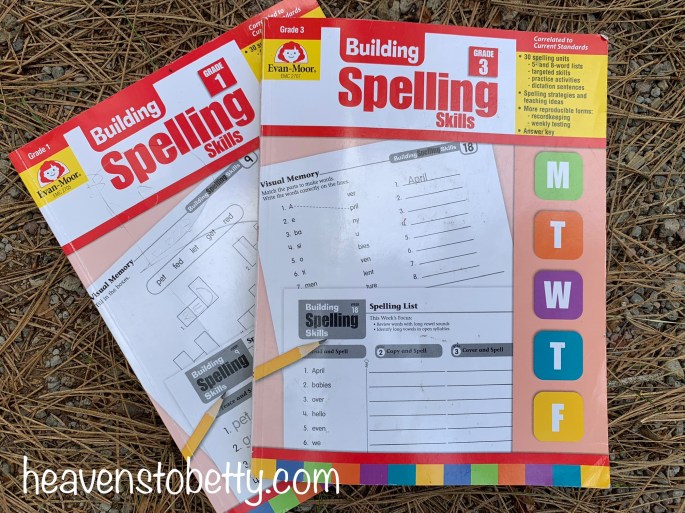 I’d like to start each day with “morning time”. You can read my post, Morning Time in our RV, for all the details about that. After that, we’ll move on to “seat work” (a term from a Ramona book by Beverly Cleary). Seat work includes Math and Spelling workbooks. We are using Math Lessons for a Living Education and Evan-Moor’s Daily Word Problems. We are also using Building Spelling Skills by Evan-Moor.