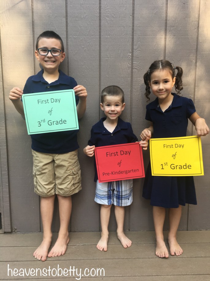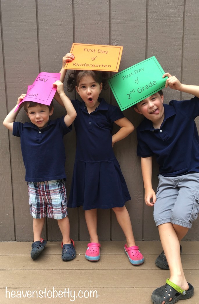 I’ve taken back-to-school photos of my kiddos every year since S was 4-years-old. I used the same cardstock signs every year. It was our back-to-school tradition. As you can see in the photos below, we try not to take ourselves too seriously!