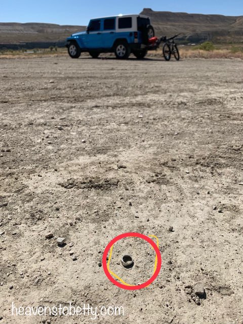 Suddenly, a particularly aggressive wasp dove straight for E, and flew into the Jeep. E, quickly swatted at the wasp, using his left hand like a tennis racket. As his arm extended in full swing, he completely missed the wasp and his wedding ring (which has been needing to be re-sized for quite some time), flew off his finger into this…
