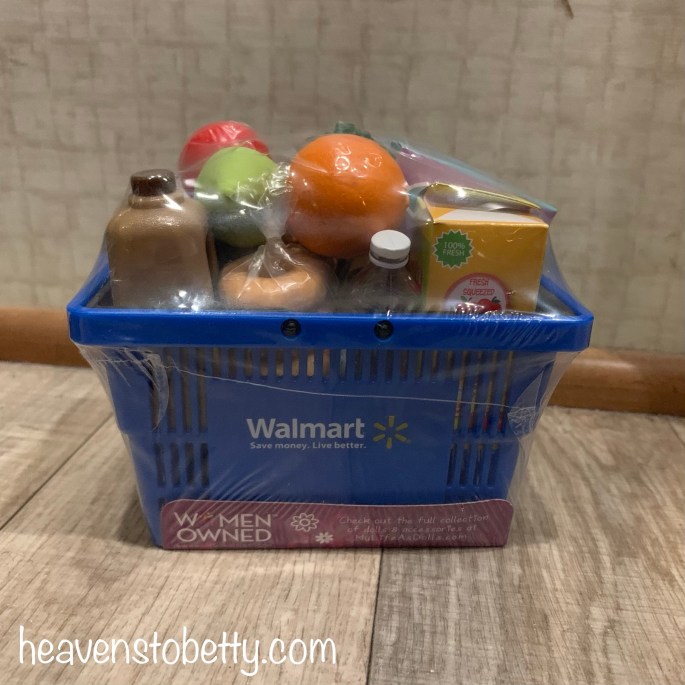 1. I found these miniature shopping baskets and play food at Walmart in the doll section. They are made for 18 inch dolls and they are perfect for playing store in the RV. Oh my goodness they are so cute!