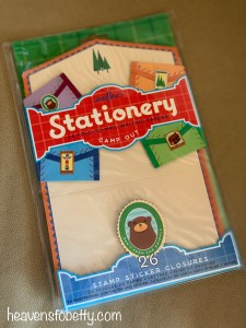 1. We got this stationary set at The Discovery, in Reno, NV. It’s a perfect way for the kids to keep in touch with our friends and family. The sets came in different themes and, of course, I got the “Camp Out” set.