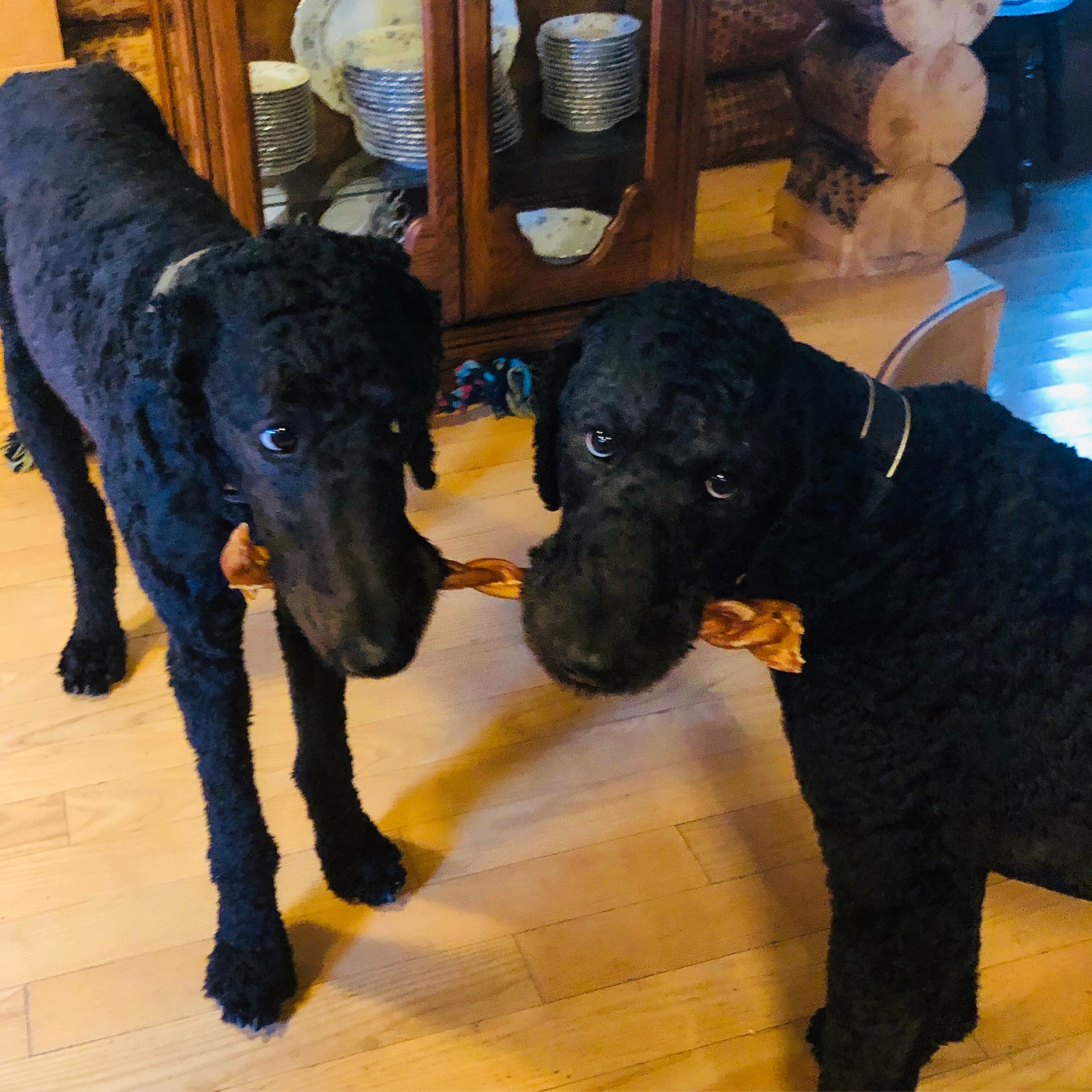 My sister’s mother-in-law got the 2 poodles as puppies and gave Patrick to my sister & her husband. The dogs only see each other at family reunions!
