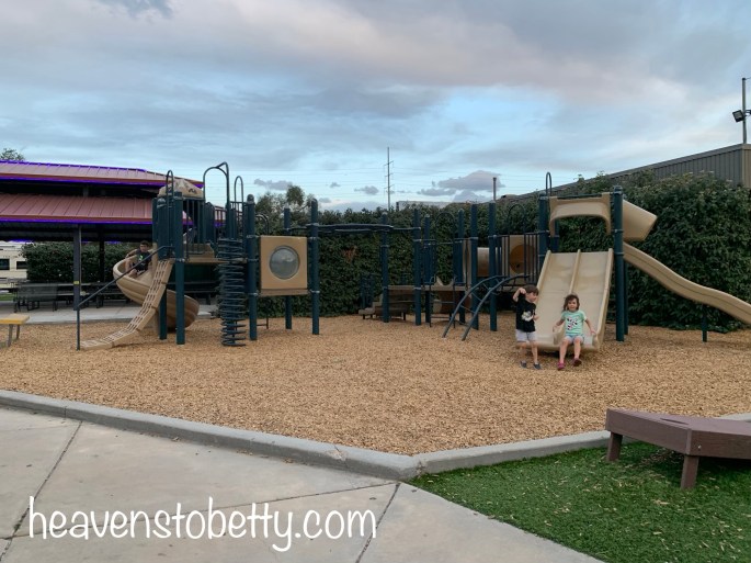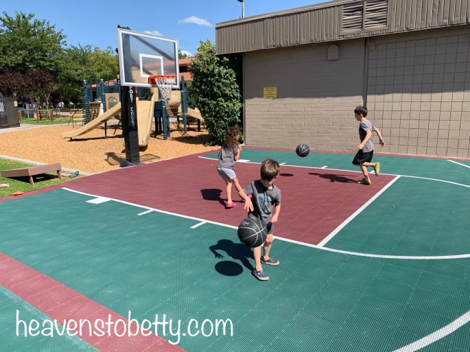 The kiddos had fun at the playground & basketball court with a lowered hoop.