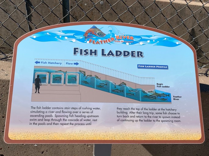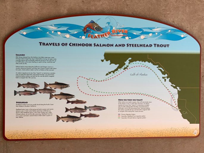 Upstream from here is the Lake Oroville Dam. It supplies water to millions of Californians and flood control for the region. Construction of the Oroville Dam altered the Feather River, destroying some spawning ans nursery grounds. In 1967, the U.S. Fish and Wildlife Services, the California Department of Water Resources and the California Department of Fish and Wildlife jointly planned the hatchery to compensate for this loss. The hatchery handles about 20 percent of the spawning fish; the remainder spawn naturally in the river below the barrier dam.