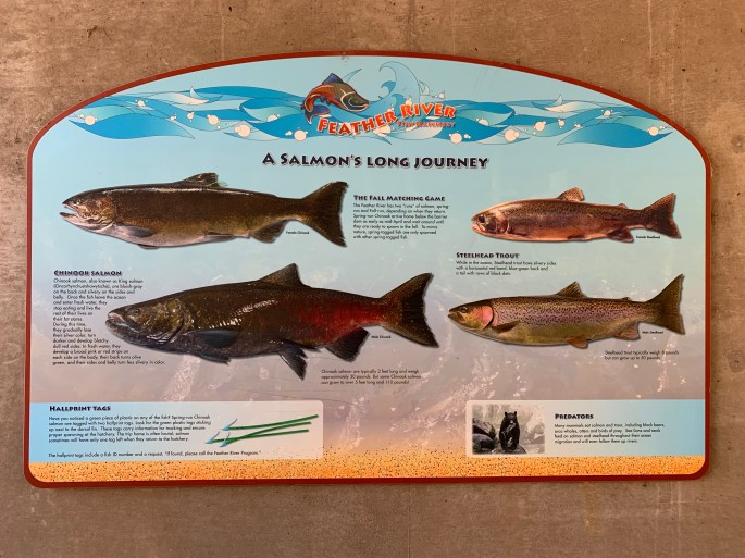 Each autumn the salmon return to the very place that they were born to lay their eggs. We have visited the salmon ladders in Oroville, California for the past 7 years (since K was born). We went last year just before the Camp Fire struck, and we were so happy to see the salmon this past Sabbath (10/5/19)! We feel a little bit like salmon, having traveled around the western United States for the past nine and a half months and then returning home. It was a nostalgic field trip. This post is chock full of educational information about salmon. I hope you enjoy learning some fun facts.