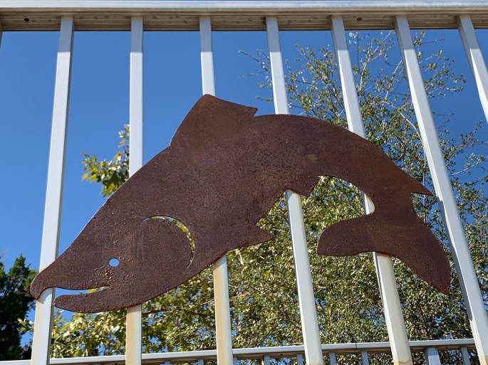We could see the fish jumping out of the river. Sometimes we can see more, sometimes not so many. It was really hard to get a good photo for y’all. You’ll have to use your imagination…