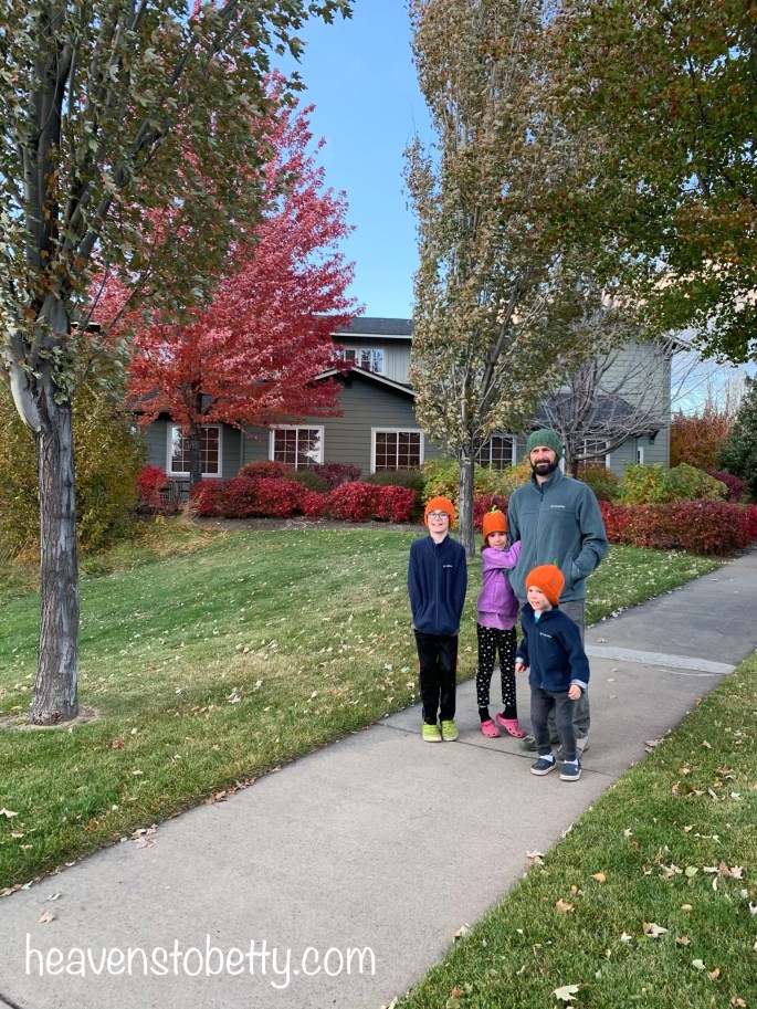 My mom knit these pumpkin hats for the kiddos. We got lots of compliments while we were on a brisk autumn walk to dinner in Bend, Oregon.