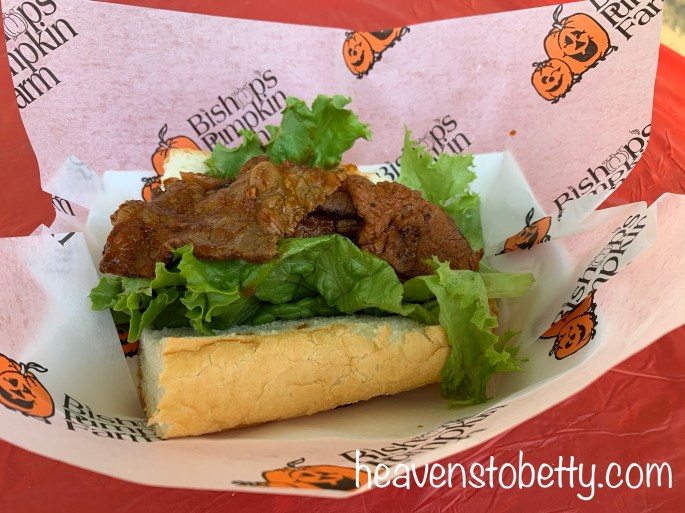 We had some leftover tickets for Bishop’s Pumpkin Farm and E and I were craving their BBQ tri-tip sandwich.