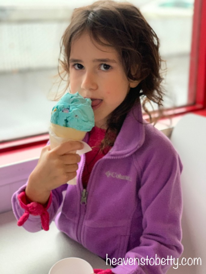 As an “after-successful-dentist-appointment” treat we got ice cream at Brock’s. Never mind that it is 45°F and raining. Never mind that ice cream is in direct opposition to good health and good dental hygiene. The ice cream here is made from scratch, on-site, and it’s super delicious! They have great flavor choices with lots of seasonal varieties. Today, “pumpkin”, “licorice” and “peppermint” were on the board. The kiddos opted for classic flavors.