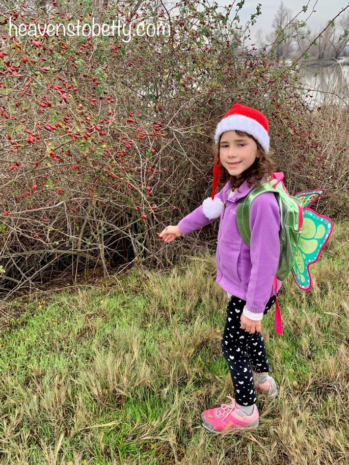 My friend, L.R. is lots of fun to hike with because she’s a hobby naturalist. She knows so much about biology, botany, and all things nature-related. She helped us identify birds and edible plants. I didn’t even know that roses produced fruit! These rose hips tasted tart and are full of vitamin C.