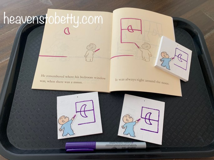 Then I used a purple permanent marker to draw a moon and window like the ones in the story and sprayed the whole thing with a clear matte sealer.