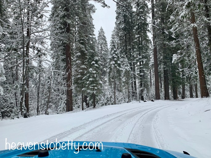We drove up to the snowy mountains on Thursday (1/09/20) in the Jeep. It was fun to drive without worrying too much about the road conditions. Ever since Bailey got his Jeep in the television series Party of Five, I’ve wanted a Jeep. We really enjoy driving it. E recently replaced the mud tires that it came with and we’re now using all-terrain tires instead. We followed a snowplow for a little while on Calif. Highway 20.