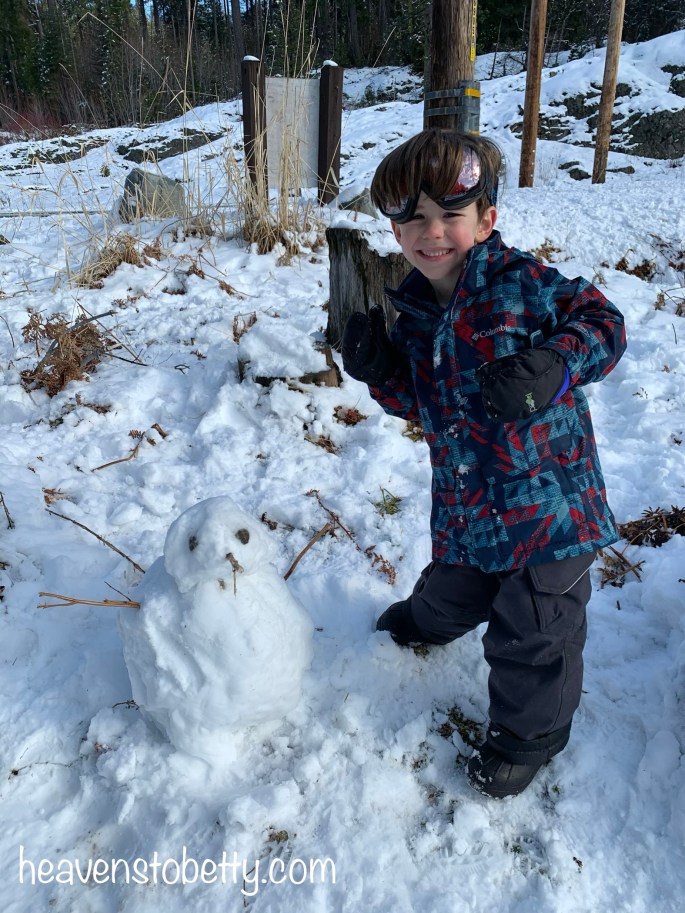 We built snowmen, had snowball fights, went for a short hike through the snowy woods and made snow angels.