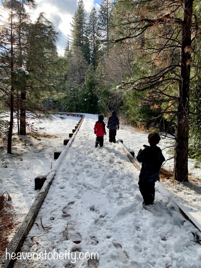 Our original destination was a ski trip to Soda Springs Mountain Resort. We’ve been there several times in the past and really enjoyed it. This last experience there was so unpleasant that we will neither return or recommend it to anyone again. It’s a long story that I’ll summarize by saying the conditions were not ideal and the interactions with the employees were much worse. So after a miserable experience at Soda Springs, we attempted to salvage the afternoon with some playing in the snow. We headed back to the Sierra Discovery Trail where we had made a pit stop earlier in the morning. Our family motto seems to be: