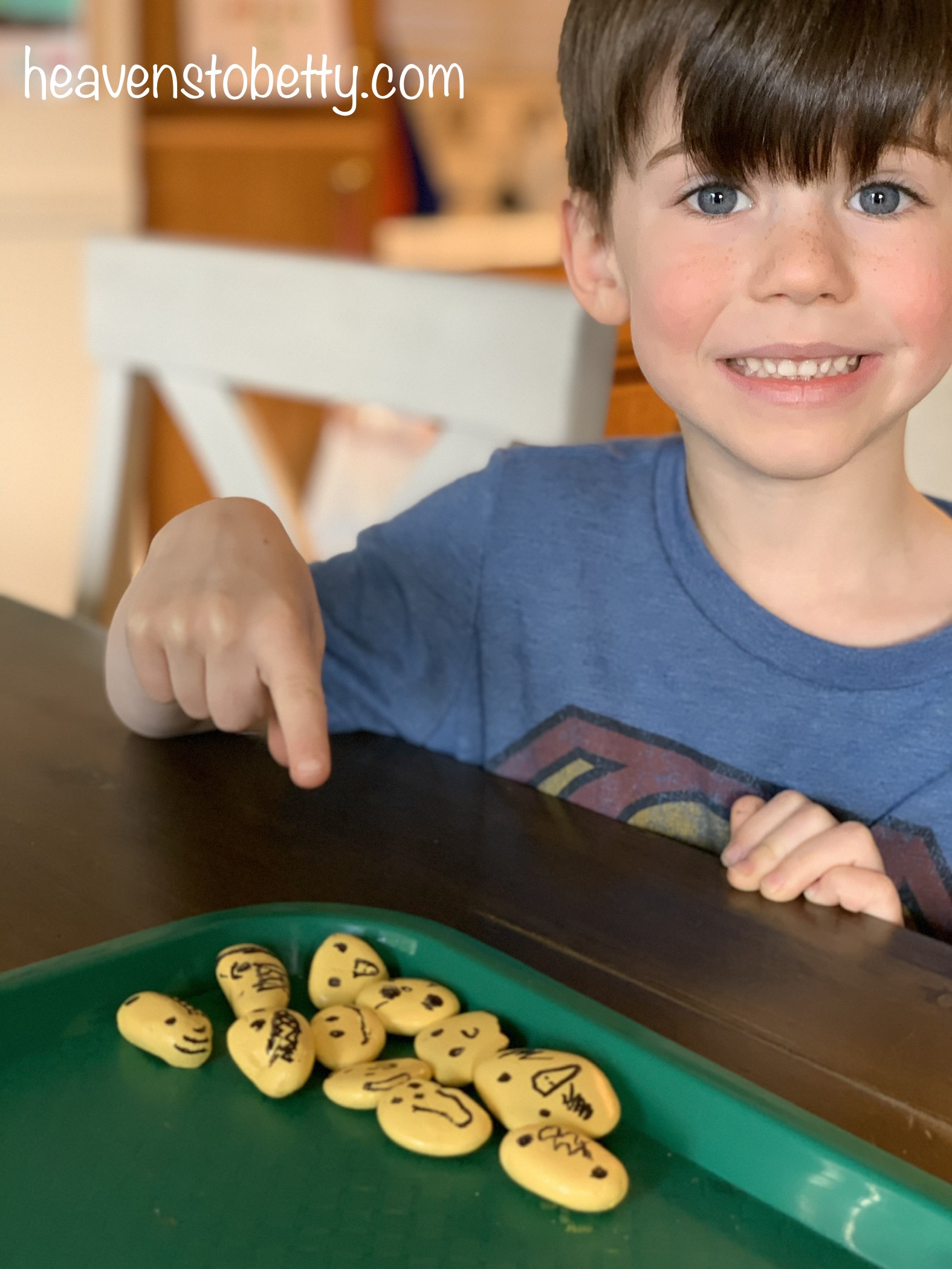 After the paint dried, the kids drew on smiling faces with a permanent marker.