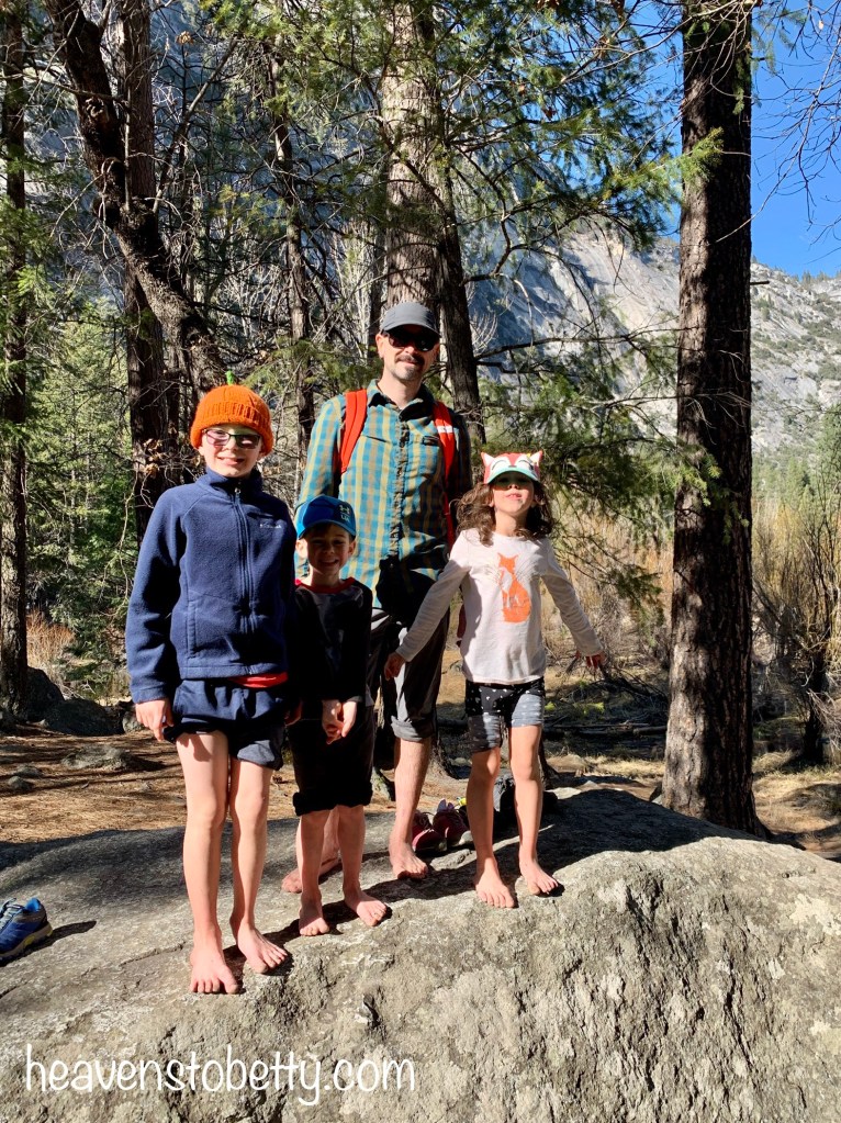We were really glad that we decided to ford the creek and walk back to the shuttle stop on the paved road. Not because the trip back was enjoyable, but rather the opposite. If our youngest son was cheerfully described as “kinda cranky” on the mile hike to Mirror Lake. He was regrettably described as “throwing a 4-alarm meltdown of a temper tantrum” almost the entire 1-mile walk back! It was a most unpleasant experience. I could’ve written the post without telling you, but you would’ve gotten the wrong idea about the hike. The pictures do look so lovely don’t they? The thing of it is, if you were to ask any one of my three kiddos what their favorite part of our trip to Yosemite was. Each one of them will tell you that the best part of the whole trip was fording that creek barefoot. I wonder if any of them will remember that temper tantrum on the walk back? [insert shrug here] Here’s to remembering the good times!