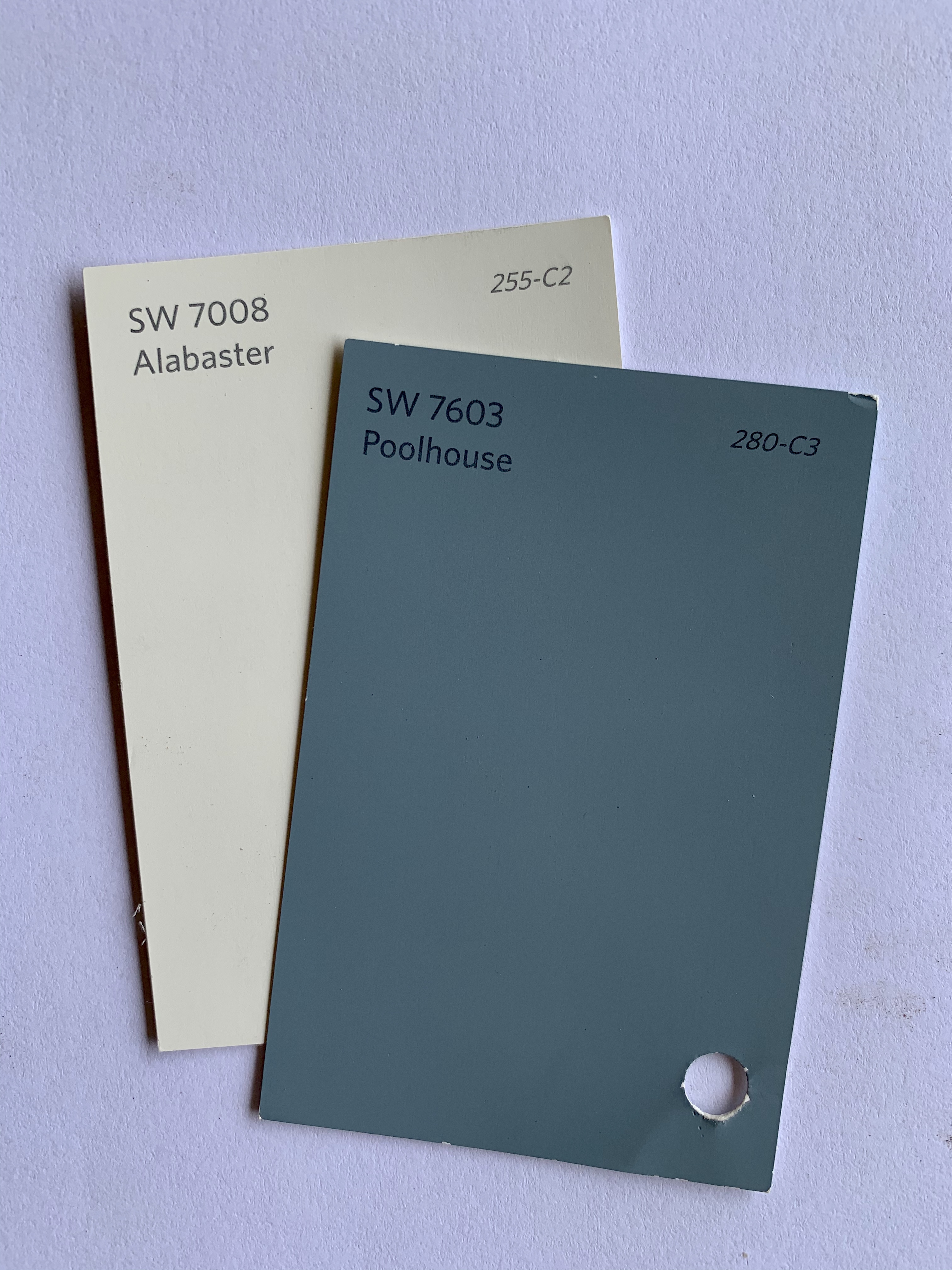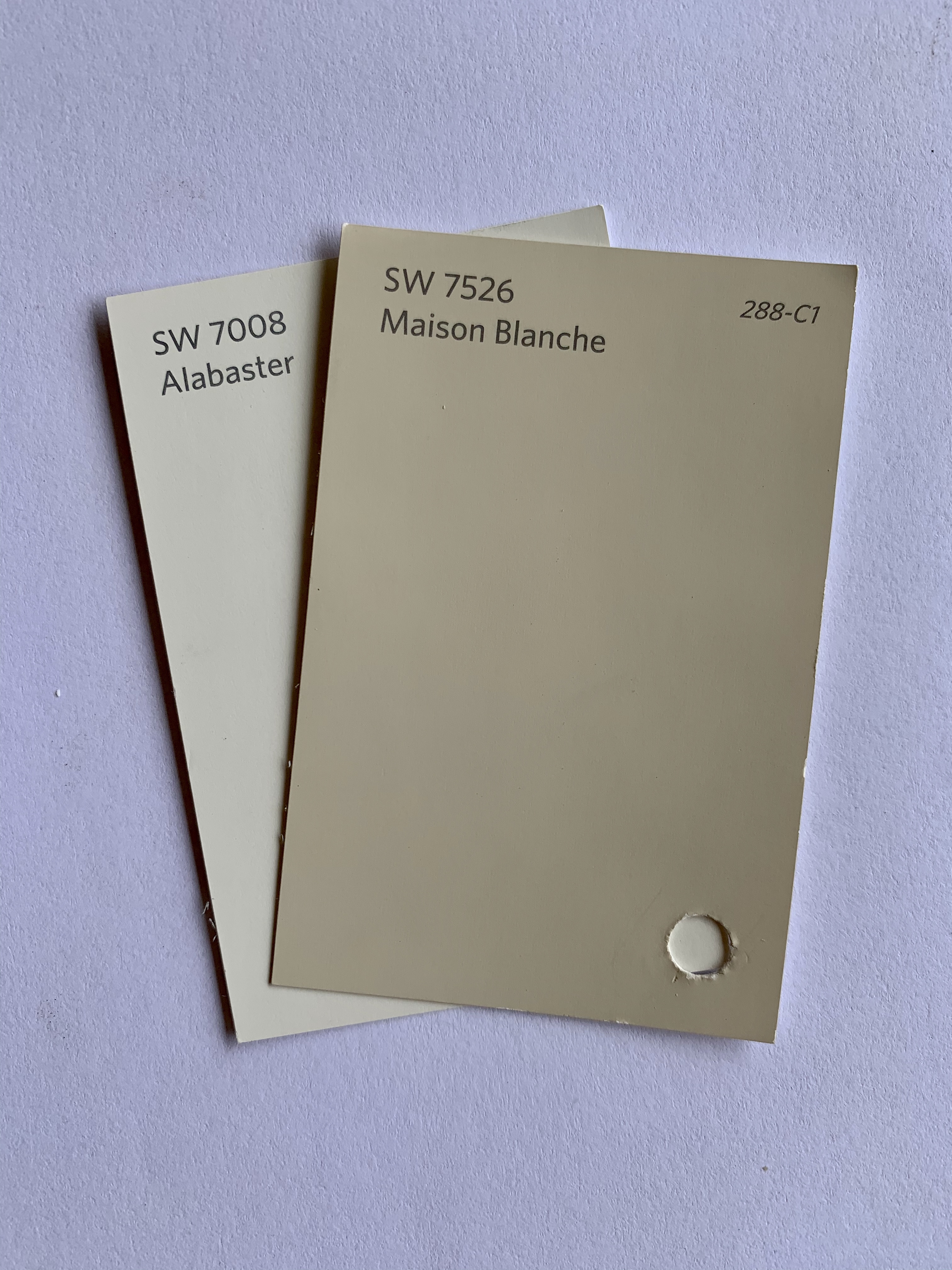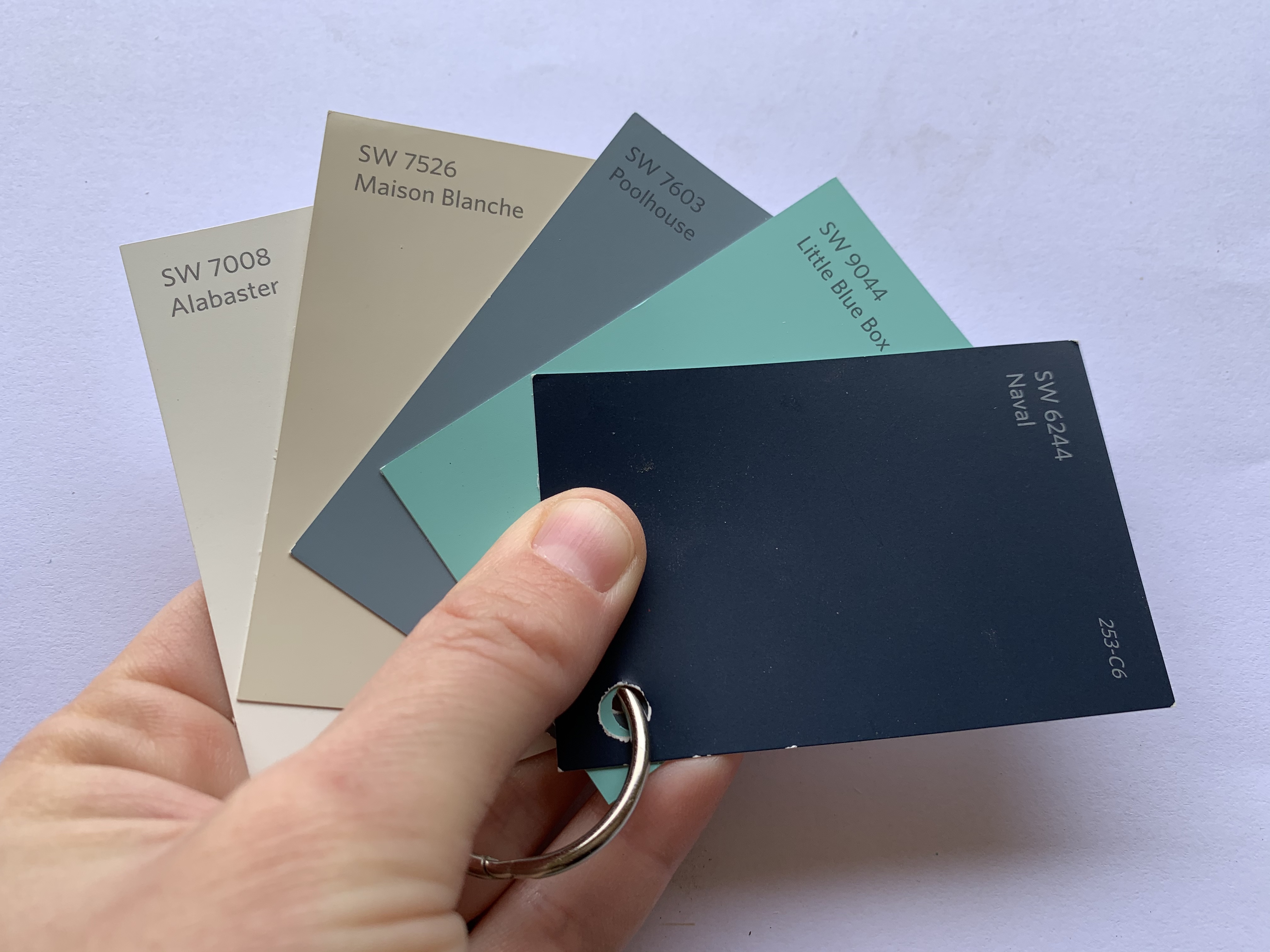 1. Wasn’t done yet. 🙂 My favorite is Maison Blanche. Have you considered an accent wall for the naval? Just a thought. You are very organized. I like how you are keeping the paint samples. Have fun!
