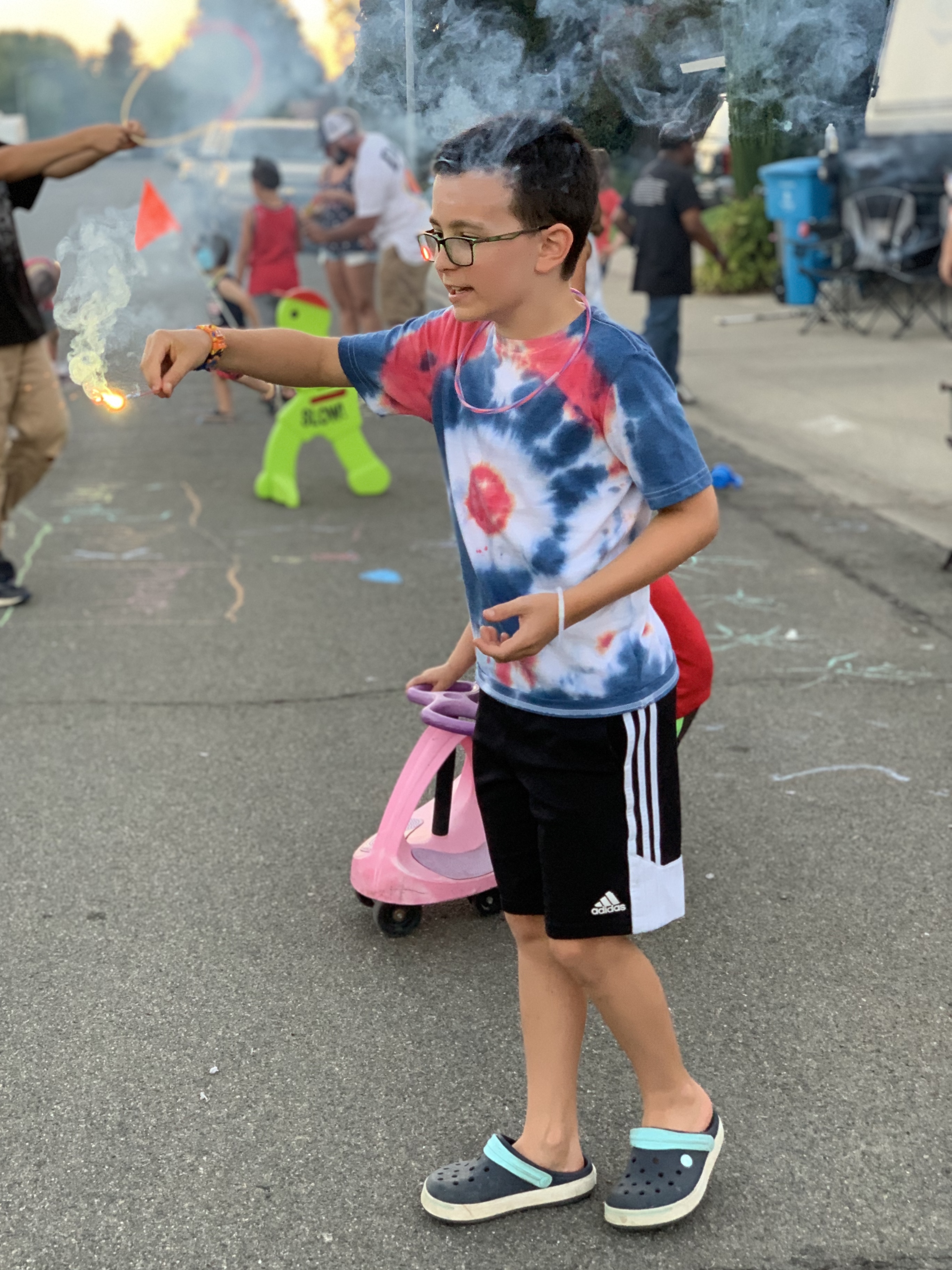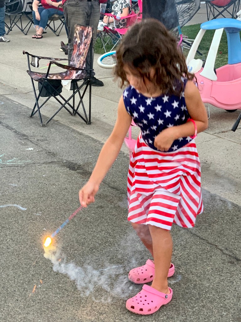All the fireworks and sparklers we’re in the street on the pavement. I was impressed by all the safety precautions taken. The neighbors appear to be very responsible! Most large displays that are usually organized by fire departments and other officials were cancelled this year due to C-19. Many parts of California do not allow fireworks of any kind due to the danger of wildfires. The city we live in right now had fireworks booths on almost every street corner. Each booth was run by a local non-profit organization. We bought sparklers from the county Little League to support local park maintenance. 😊