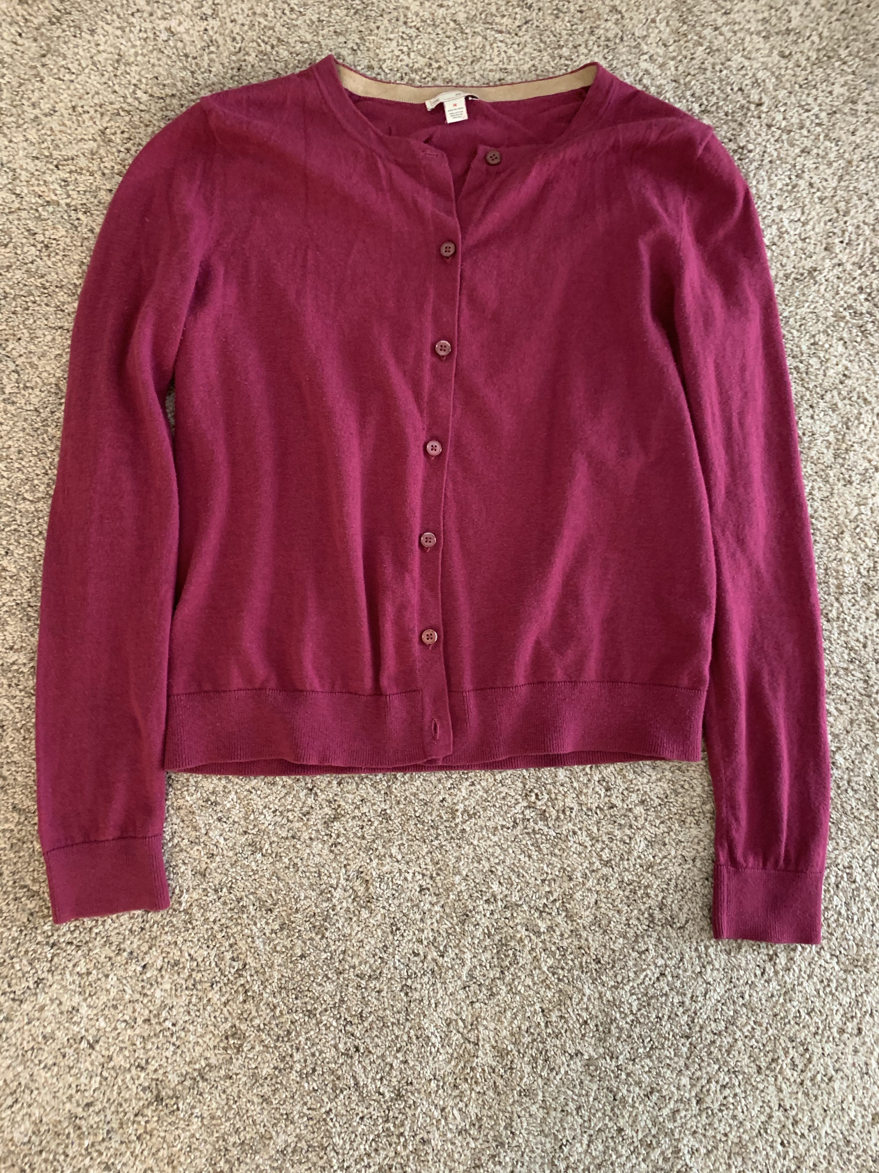 Thrifting is so much fun and it gives you that satisfying feeling when you get a find. Some of my favorite clothing items are from thrift shops. I like the plum cardigan, jeans, and graphic tee.