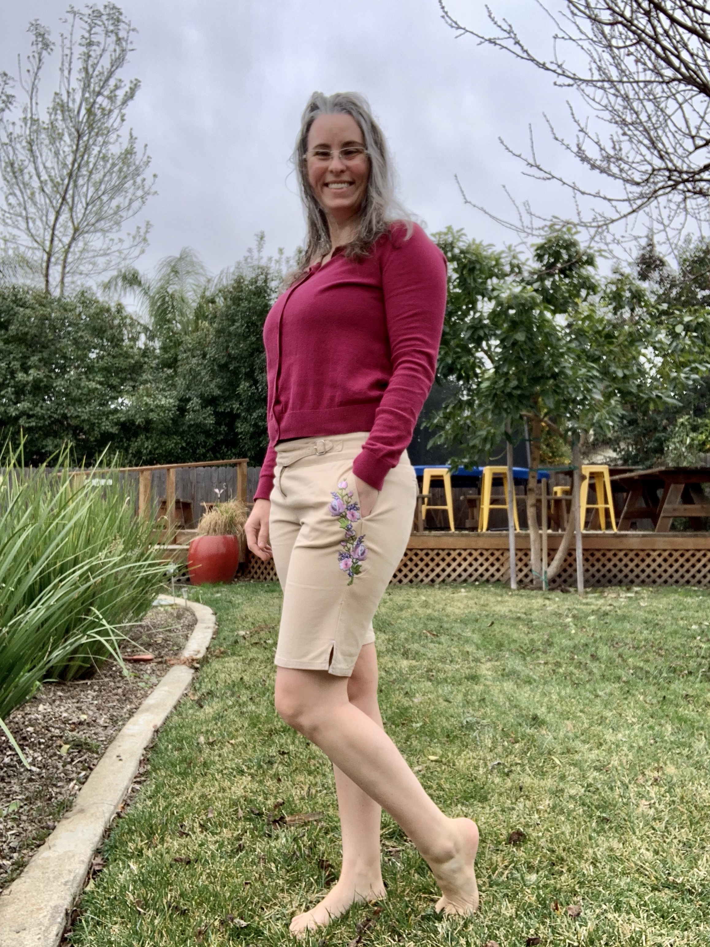 I gotta start this off by telling you that I’m really not in tune with current trends in pop culture or fashion. However, I recently became aware that thrifting clothes is really trendy right now. I watched some super inspiring videos on TikTok and YouTube on thrift styling and thrift flipping. I was so inspired that I just had to go try it myself. I wondered if I could pull off a thrifted spring ensemble that was age appropriate, conservative, comfortable and fashionable. I’m super excited to show you my haul. I got everything for between $5-$10 per piece and spent about $60 total on a mix & match spring wardrobe with 4 bottoms, 4 shirts, a sweater and a cardigan. First I’ll show you the separate pieces and then some of the outfits I’ve tried so far. I’ll end the post with some tips for thrifting your own spring wardrobe.