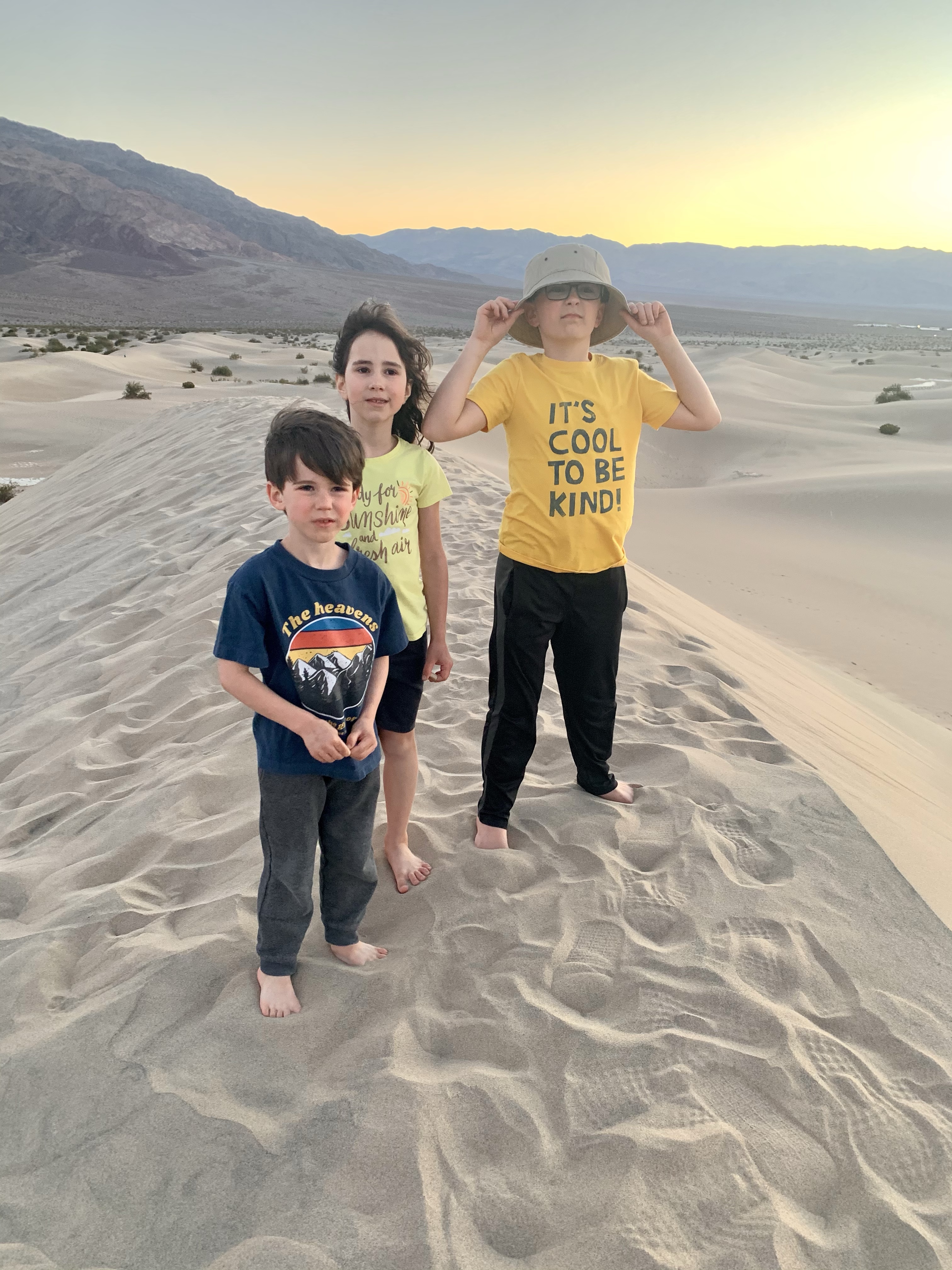 To end our day, we attempted to hike to the furthest dune at Mesquite Sand Dunes. Much to the dismay of our youngest son, we only made it about halfway. To be fair, halfway was about a mile of hiking up and down sand dunes. If you’ve ever walked in loose sand you can imagine the difficulty level. Our poor kiddo was absolutely devastated at not reaching our goal and we trudged back to the jeep with headlamps on, shoes full of sand, eyes brimming with tears, and forlorn wails of, “We have to come back here again!”