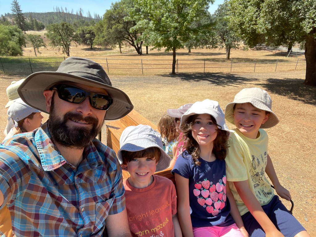 The tractor ride must’ve been fun for the whole fam! Love the selfie pic and shirt you’re wearing. I should get a fun homeschooling shirt like that too.