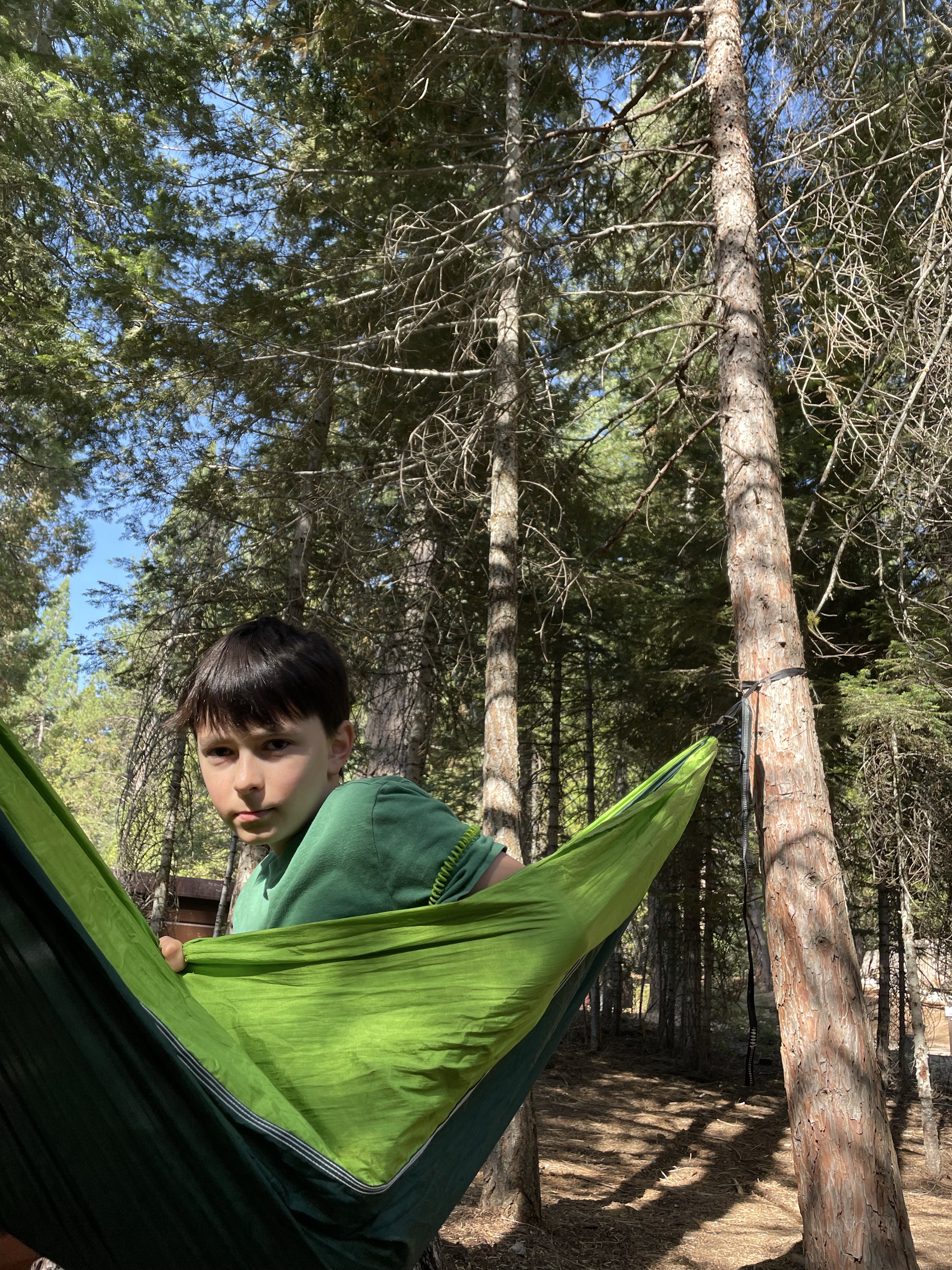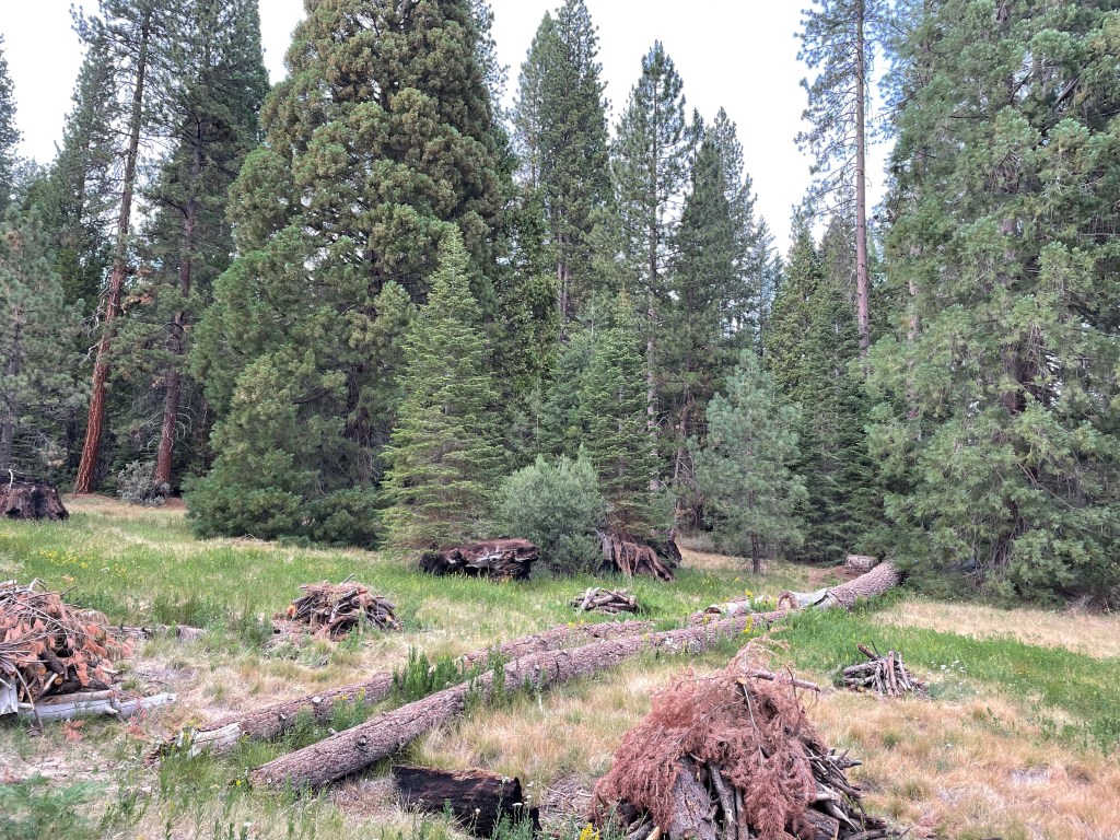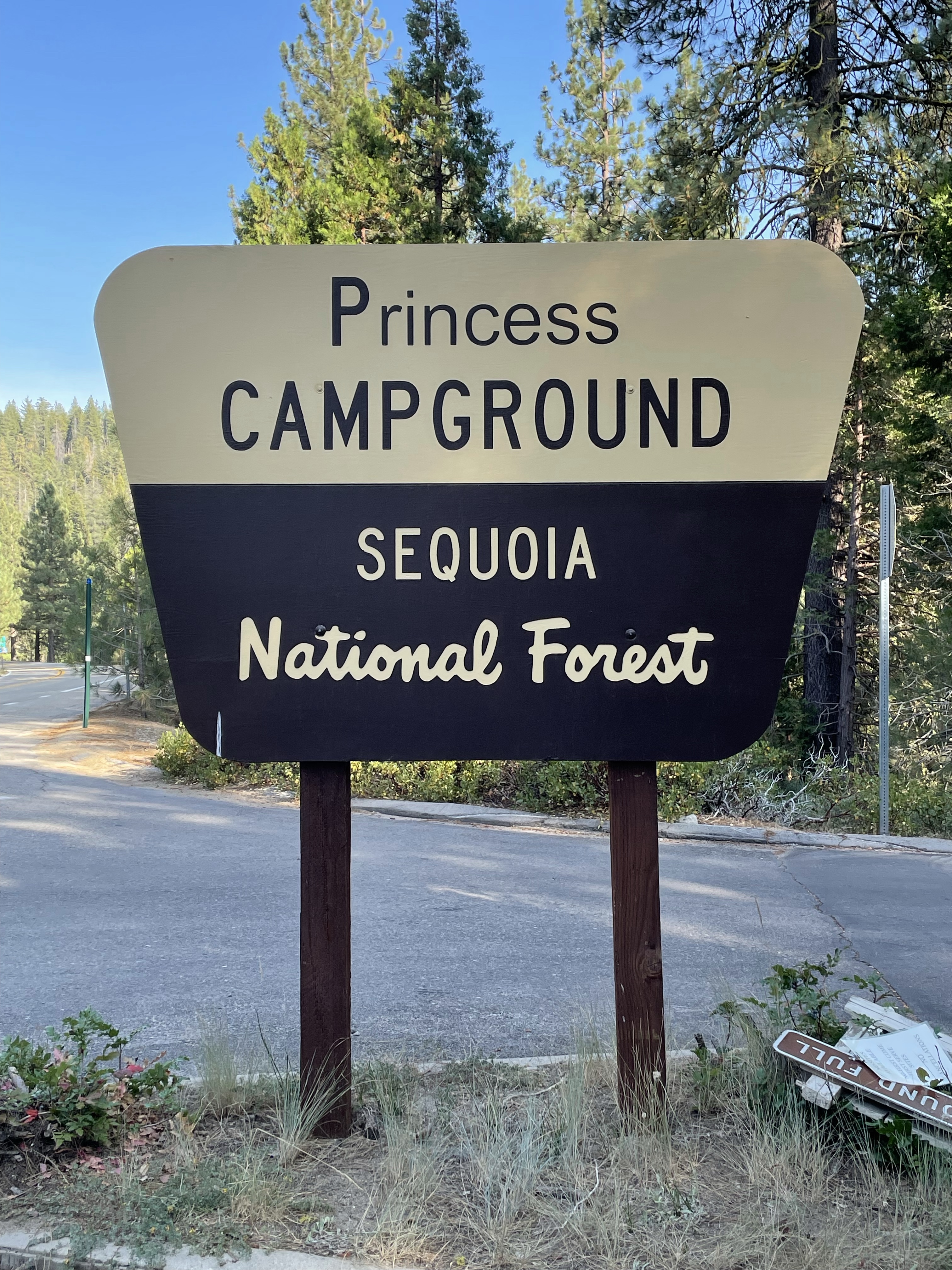 There are lots of camping options around King’s Canyon/Sequoia National Parks and we randomly chose Princess Campground when I was looking for reservations back in February. We really liked it and we would definitely camp there again. Although Fire danger was much too high to allow campfires they did allow hammocks! The camp host was totally on point and wore a plastic tiara over her outdoor hat! Our campsite, Morning Loop #2 even had a cool giant sequoia stump in it.