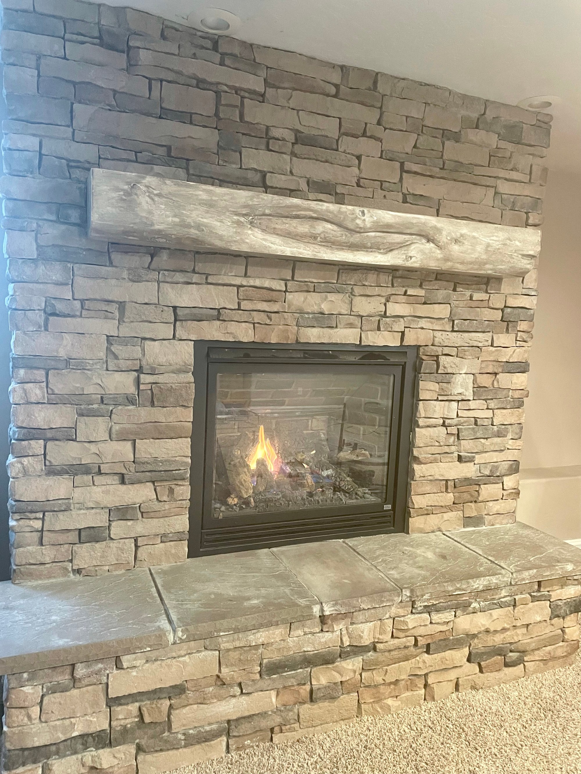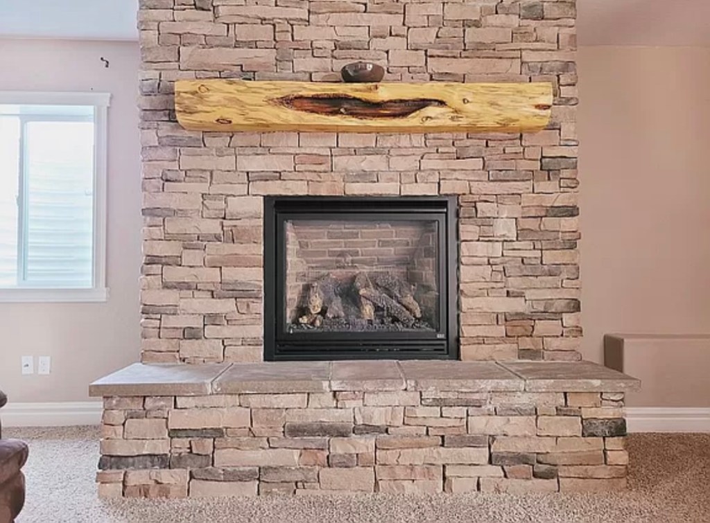 I actually like the original coloring, but it doesn’t go with the color of the stone around it. I think the finished product looks great! What you put on the mantel will depend on your taste. We have a wood-burning stove which doesn’t have a mantel so we added some shelves near the stove enclosure. Our house is very rustic so my shelves are mostly filled with items from my late parents – an old camera that belonged to my mama, a clock my daddy made, and a few wildlife themed figurines they collected. Of course, this time of year all of that gets replaced with Christmas decorations, LOL.
