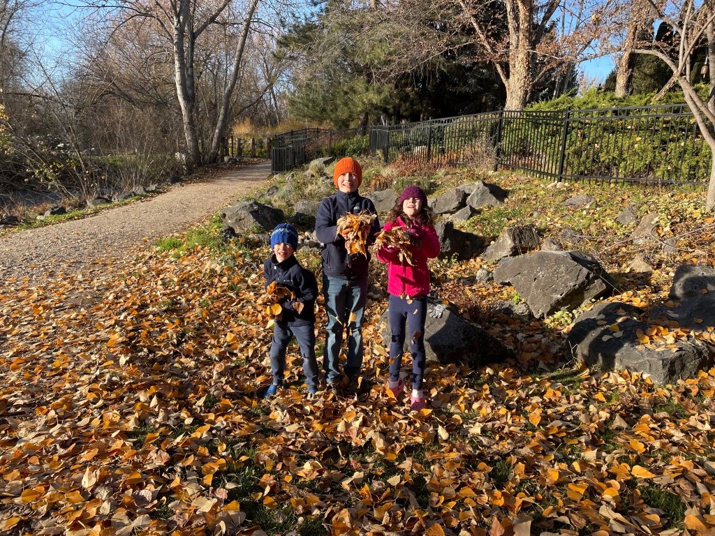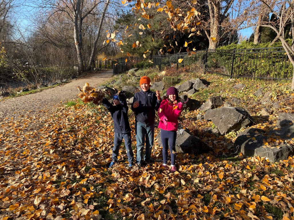 We had such fun kicking through the leaves and then gathering up leaves to throw on ourselves and each other!