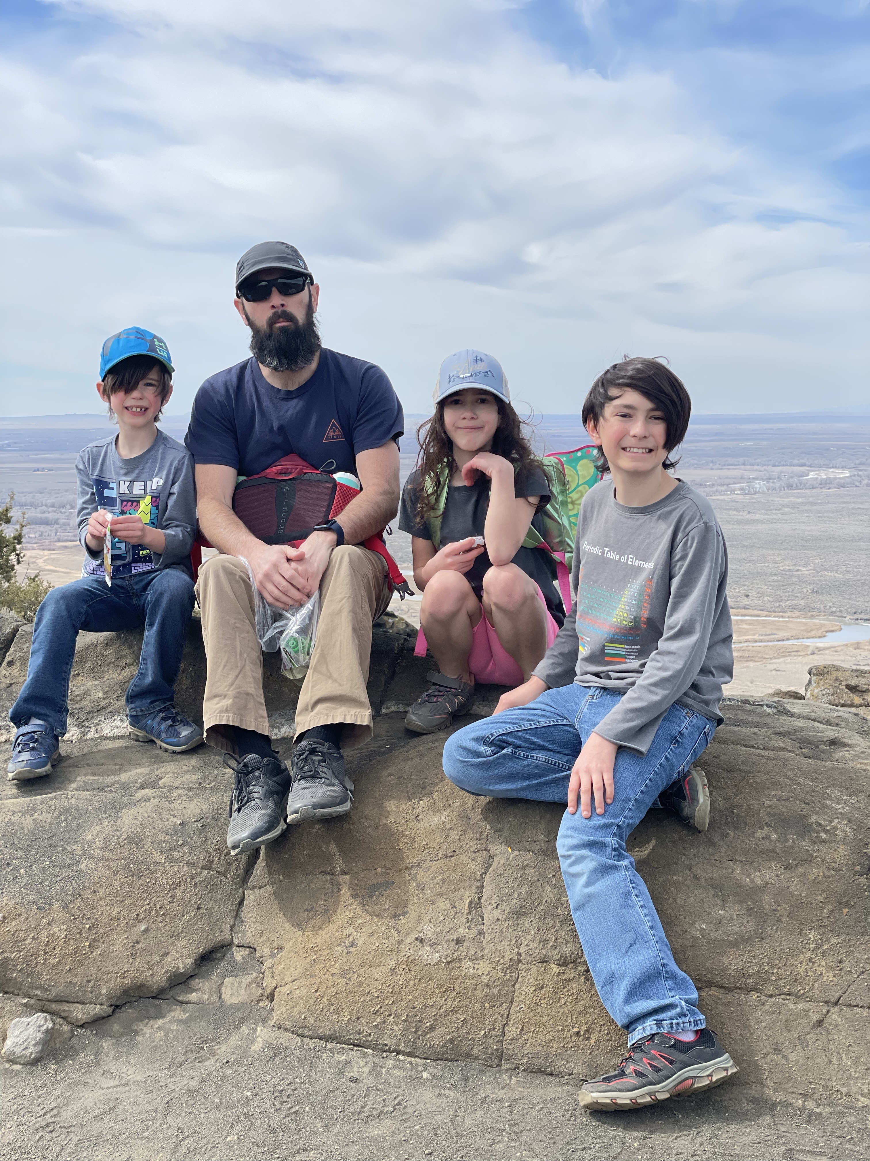It looks like a nice hike. The view from the summit was great. Great pictures of your family. We are so happy Spring is here, too!
