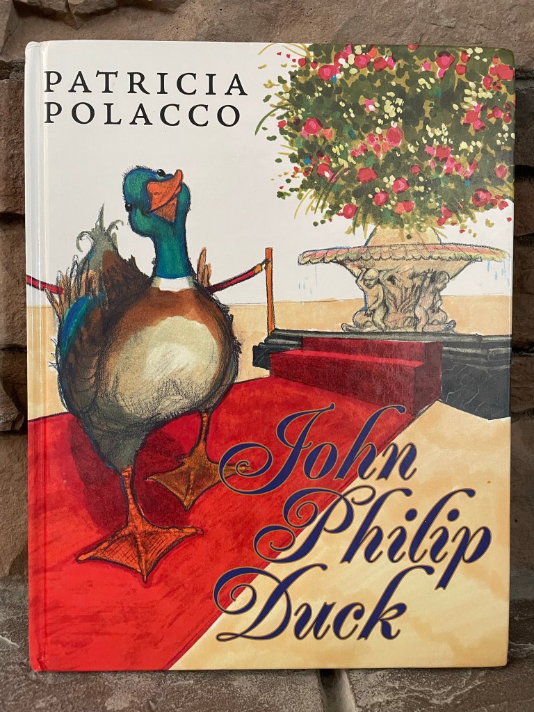 I was thrifting, and going through the shelf of children’s picture books and stumbled upon “John Philip Duck” by Patricia Pollacco. Now, if this title had been by another author I probably would’ve passed it by. John Philip Duck!?! What in the world is that about? But because it was by Patricia Polacco, into the cart it went.